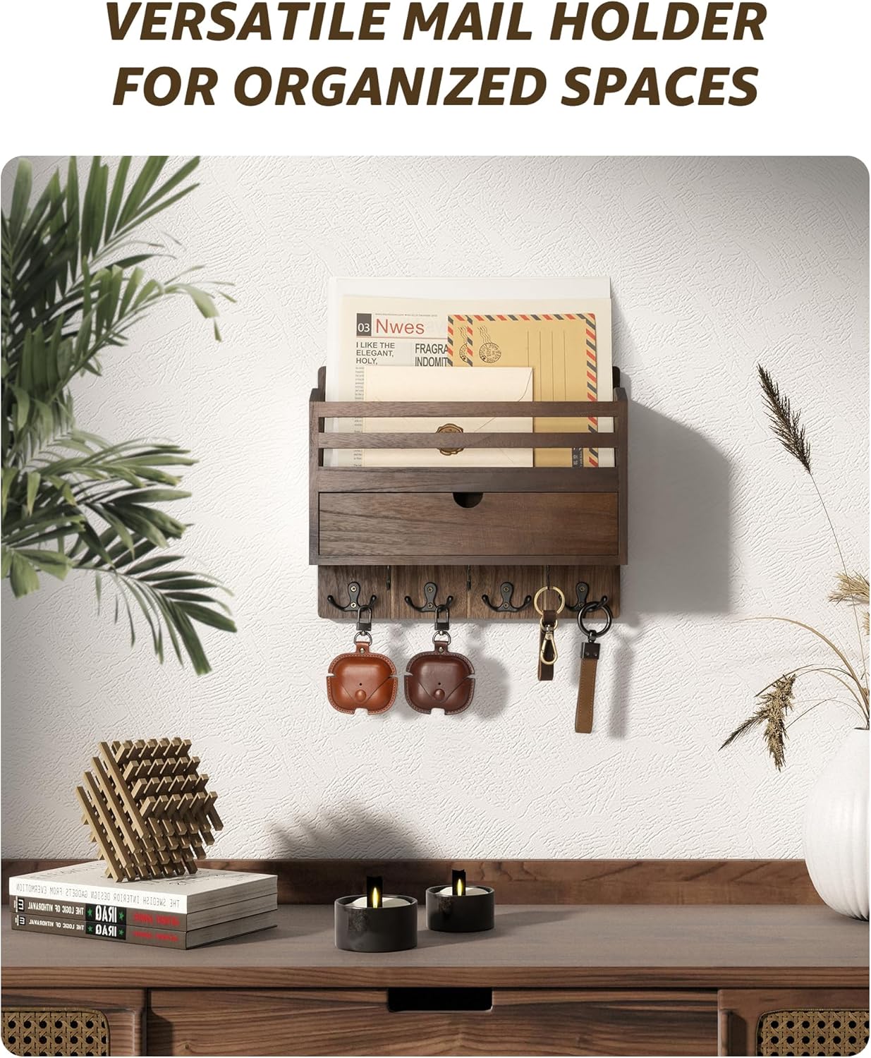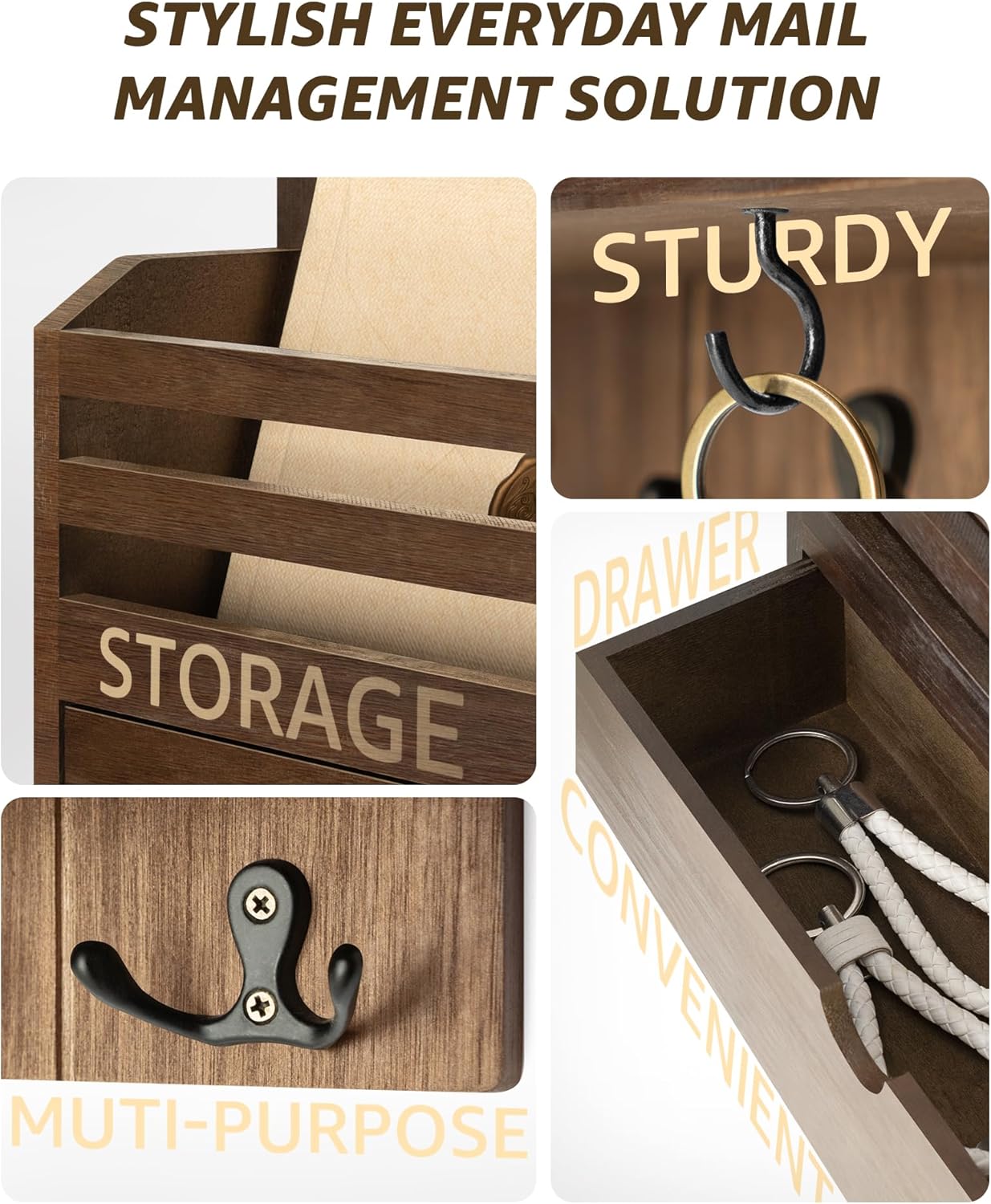 [OVERSIZED DRAWER ORGANIZER] This brown mail holder is incredibly practical! Equipped with a spacious drawer, it easily stores wallets, sunglasses, and other small items, so you’ll never have to worry about losing them again. Instantly transform your home into a tidy and organized space, effortlessly saying goodbye to clutter!