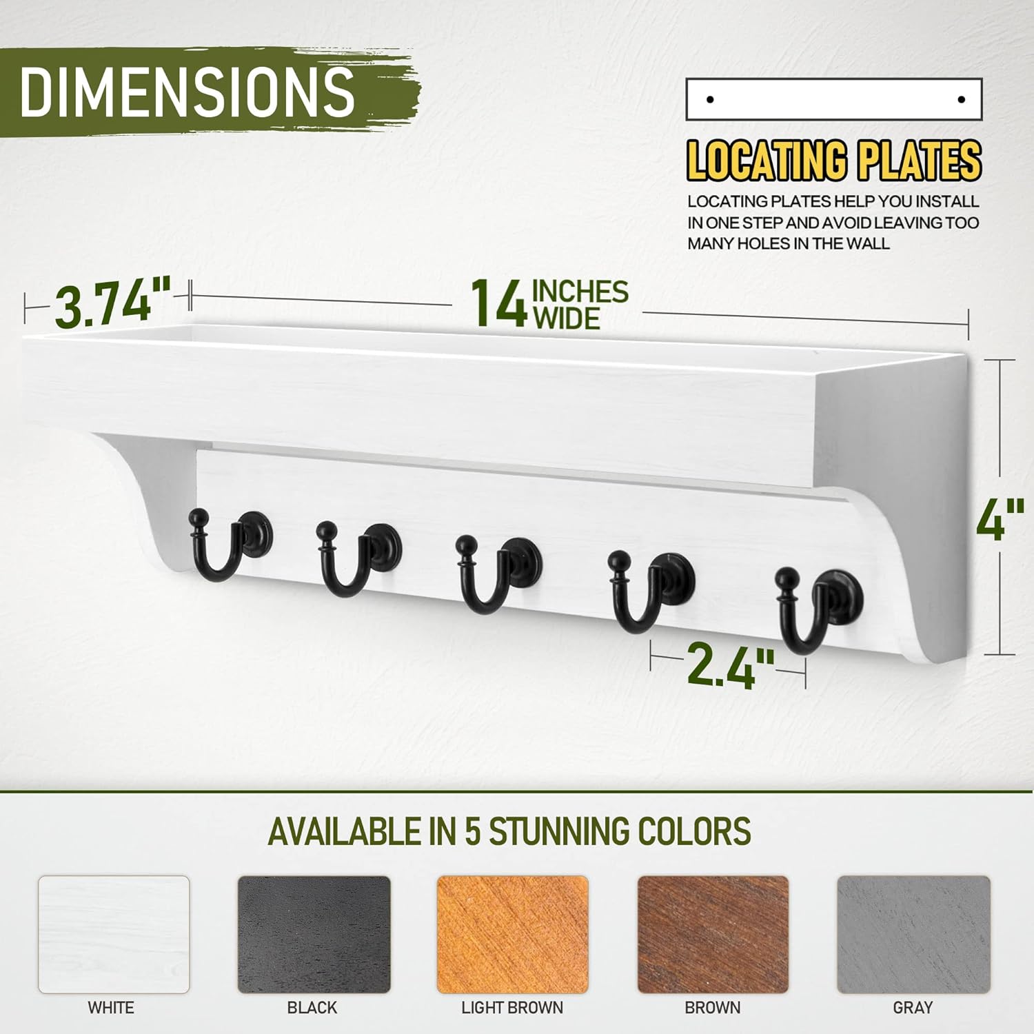 【NO NEED TO ASSEMBLE】The wood shelves does not need to be assembled. Provided a handy marker ruler facilitates foolproof placement and installation of the 2 wall anchors and 2 screws. Two buffering stickers protect the wall from damage. Make your household run more efficiently and send loved ones off with all their essential personal items.