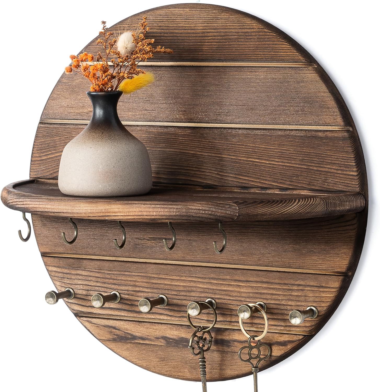 [SPACE-SAVING] Meet your wall’s new friend! This key rack wall mount transforms empty walls into functional beauty. With smartly spaced entryway wall organizer and a shelf with hooks, you’ll never lose your keys or mail again. It’s perfect for entryway decor, or living room organization, keeping everything accessible while adding charm home storage hooks setup