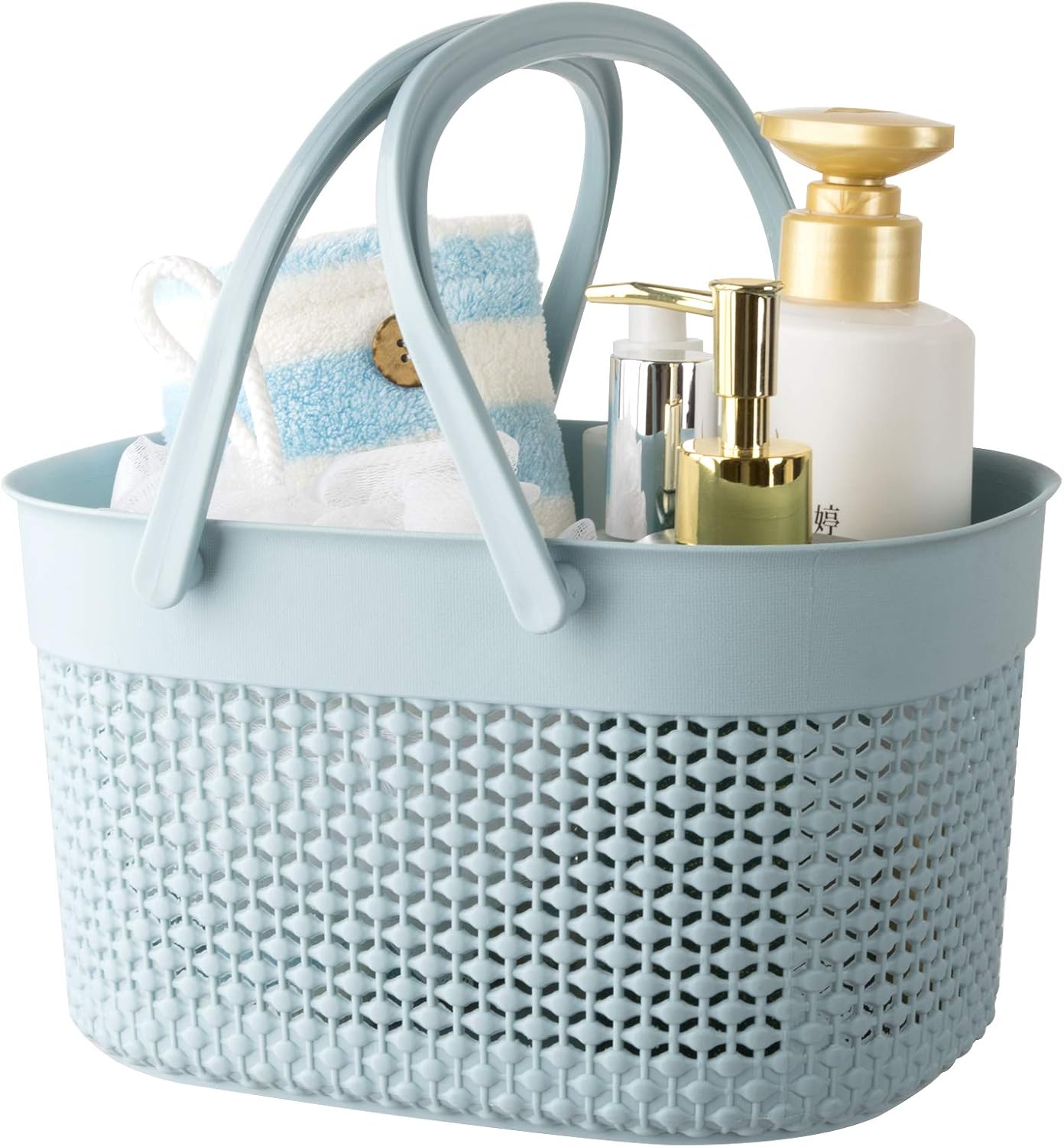 rejomiik Portable Shower Caddy Basket, Plastic Organizer Storage Tote with Handles Toiletry Bag Bin Box for Bathroom, College Dorm Room Essentials, Kitchen, Camp, Gym, Blue