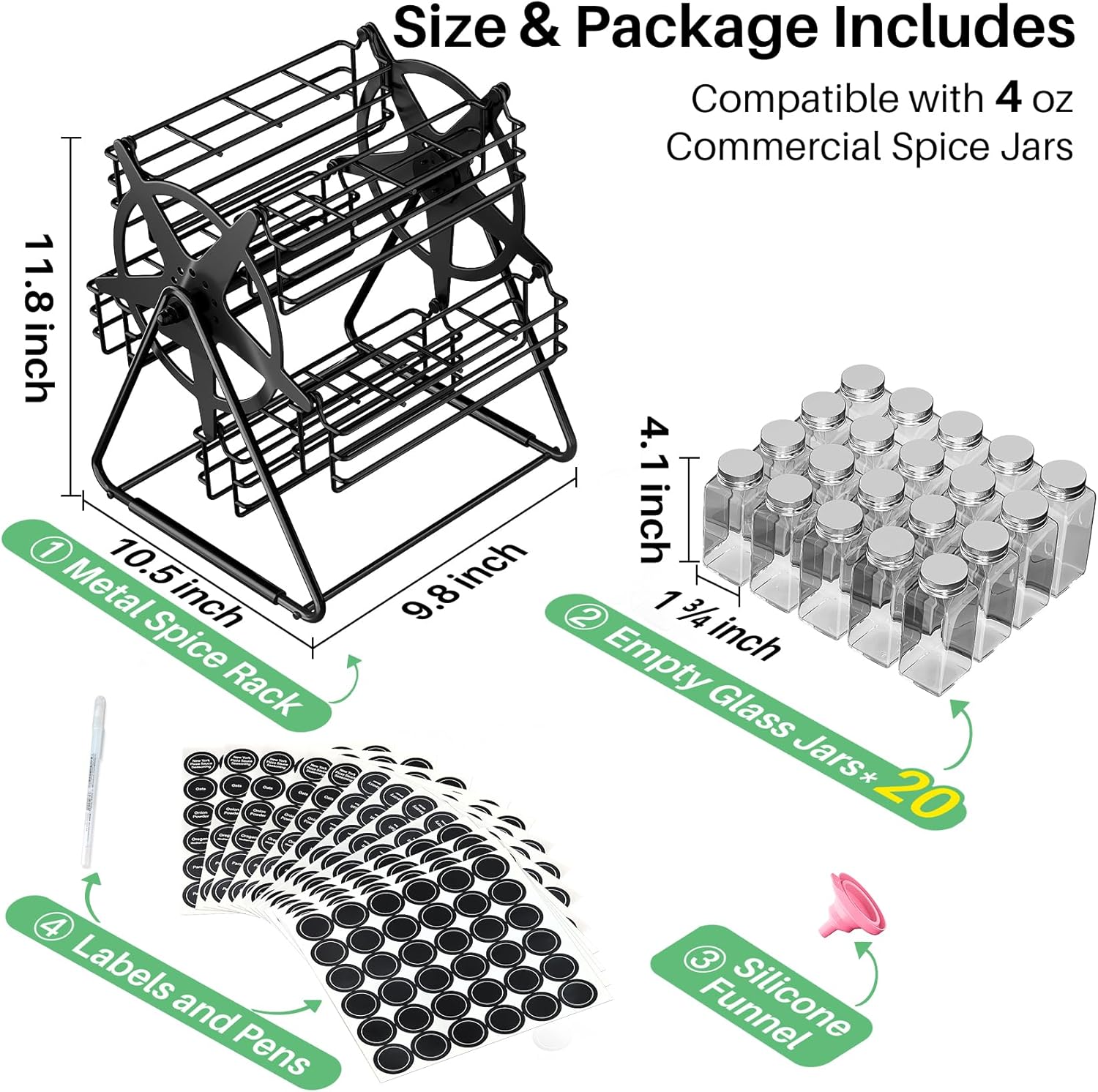 Rotating Spice Rack Organizer for Large Cabinets Kitchen Countertop with Thicken Spice Jars and Labels, Spinning Like Ferris-Wheel, Metal (M)