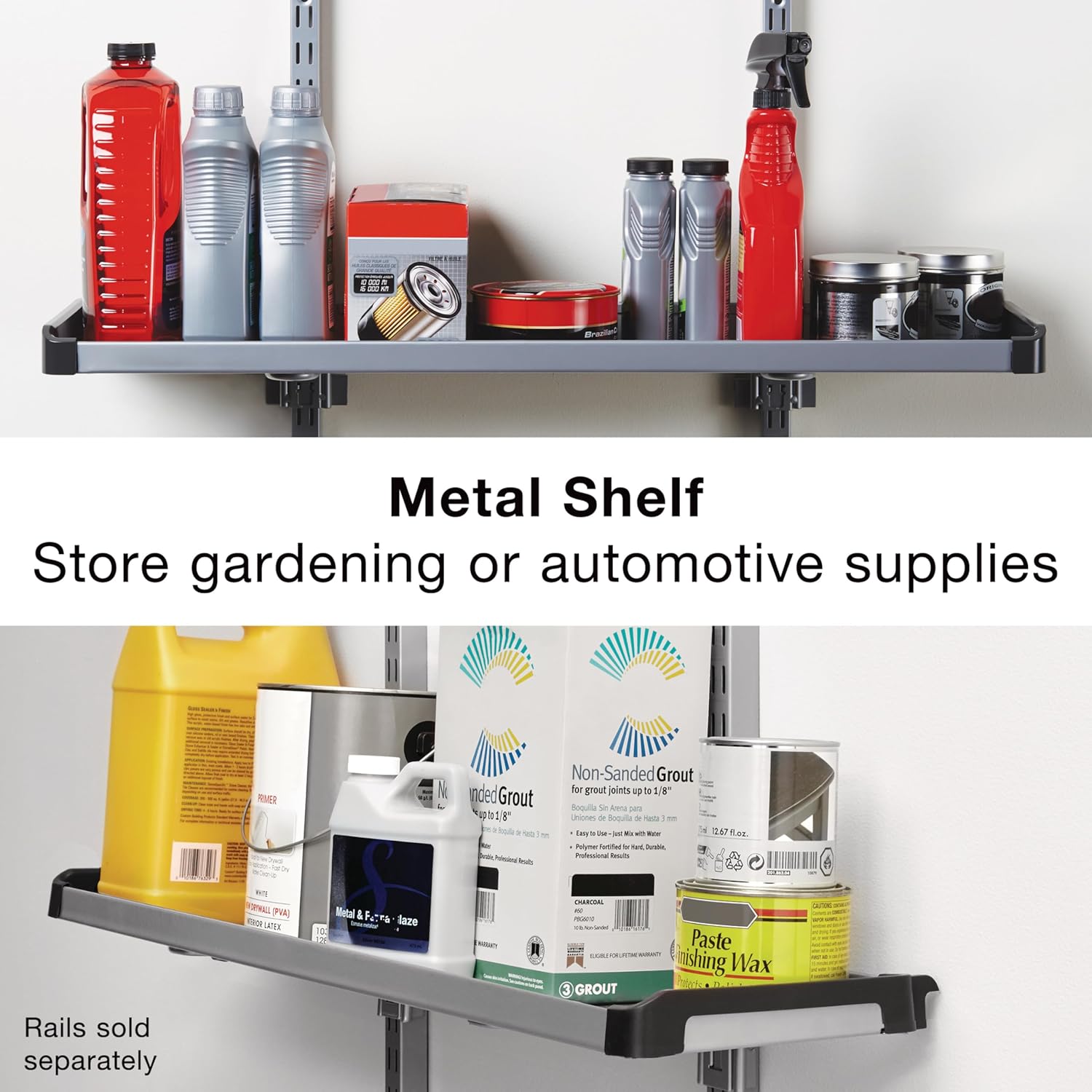 Rubbermaid FastTrack Rail Large Shelf Organization System, Holds up to 50 Pounds, Ideal for Cleaning Products/Garden Supplies/Laundry Products