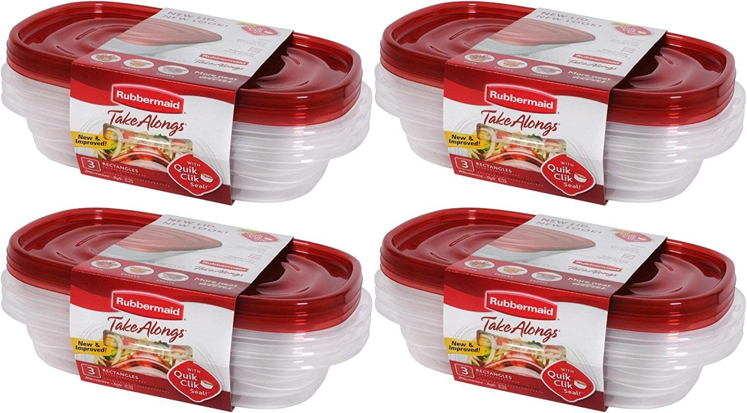 Rubbermaid TakeAlongs Food Storage Container, Divided Dishes, Set of 12, 4-cup, Chili. New quick-click seal with an improved lid clicks in place, ensuring contents are secure. Ridged lids make for easier stacking. Easy-carry handles help prevent drops. Microwaveable, top-rack dishwasher safe and freezer safe. Clear containers make it easy to see what’s inside. Made in the USA for nearly 80 years, Rubbermaid has represented innovative, high-quality products that help simplify life. Recognized as a “Brand of the Century” for its impact on the American way of life.