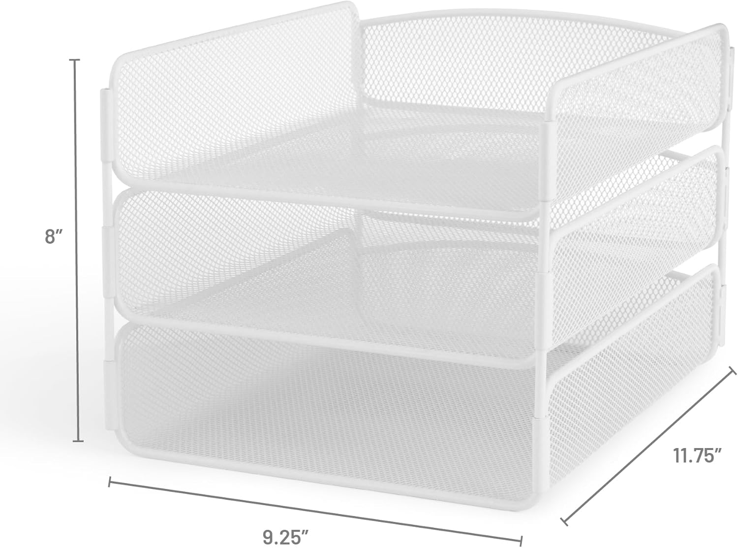 Onyx Mesh 3 Tray Desktop Organizer helps convert a cluttered desktop into an organized, productive workspace. Manufactured with a stronger, thicker, commercial-grade steel, it is designed to stand up to years of heavy, repetitive commercial use. Three letter-sized trays vertically pin together to help organize loose papers, folders, notepads and envelopes in cubicles, home offices, mailrooms and corporate desks and work tables. The Onyx Family includes a diverse collection of stylishly-designed steel mesh products, from desktop organizers to machine stands. Onyx makes it easy to create a sleek, professional, organized workspace.