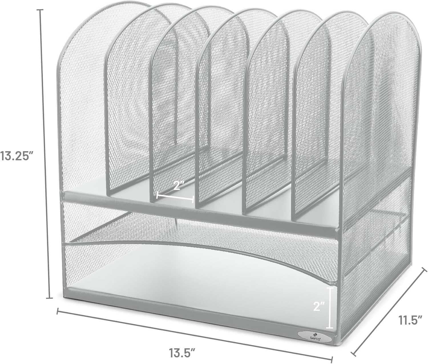 EFFICIENT ORGANIZATION. Six 2″ wide sections make easy work of desktop clutter by displaying important files and binders vertically for quick selection. Two horizontal trays conveniently hold mail, stacks of paper, catalogs, folders, and envelopes.