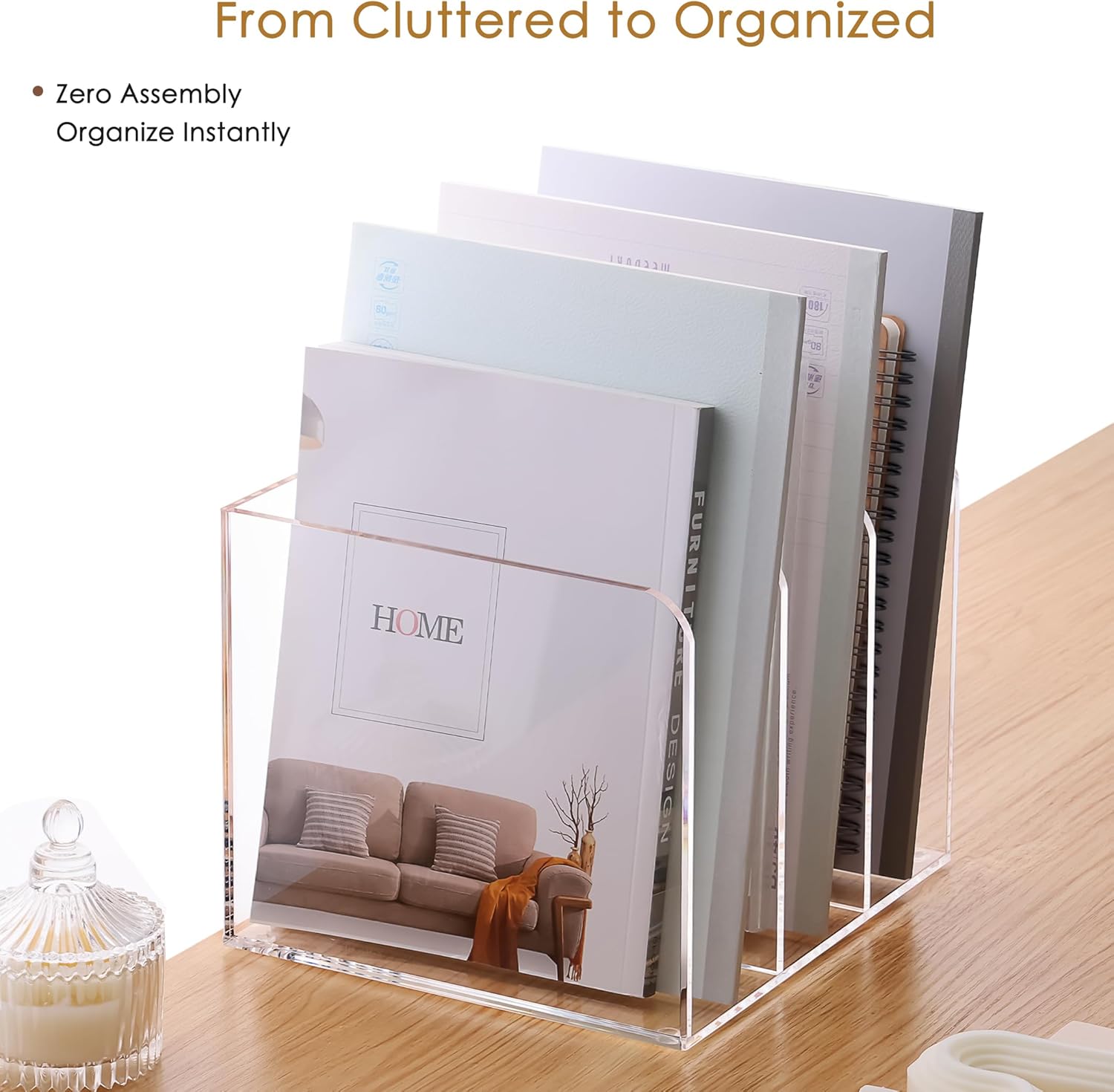 Durable & Non-Slip Design: This magazine holder is built to last with shatter-resistant, scratch-proof acrylic. Smooth edges protect your items, and 4 rubber pads on the bottom keep it firmly in place, preventing slips and scratches even when fully loaded.