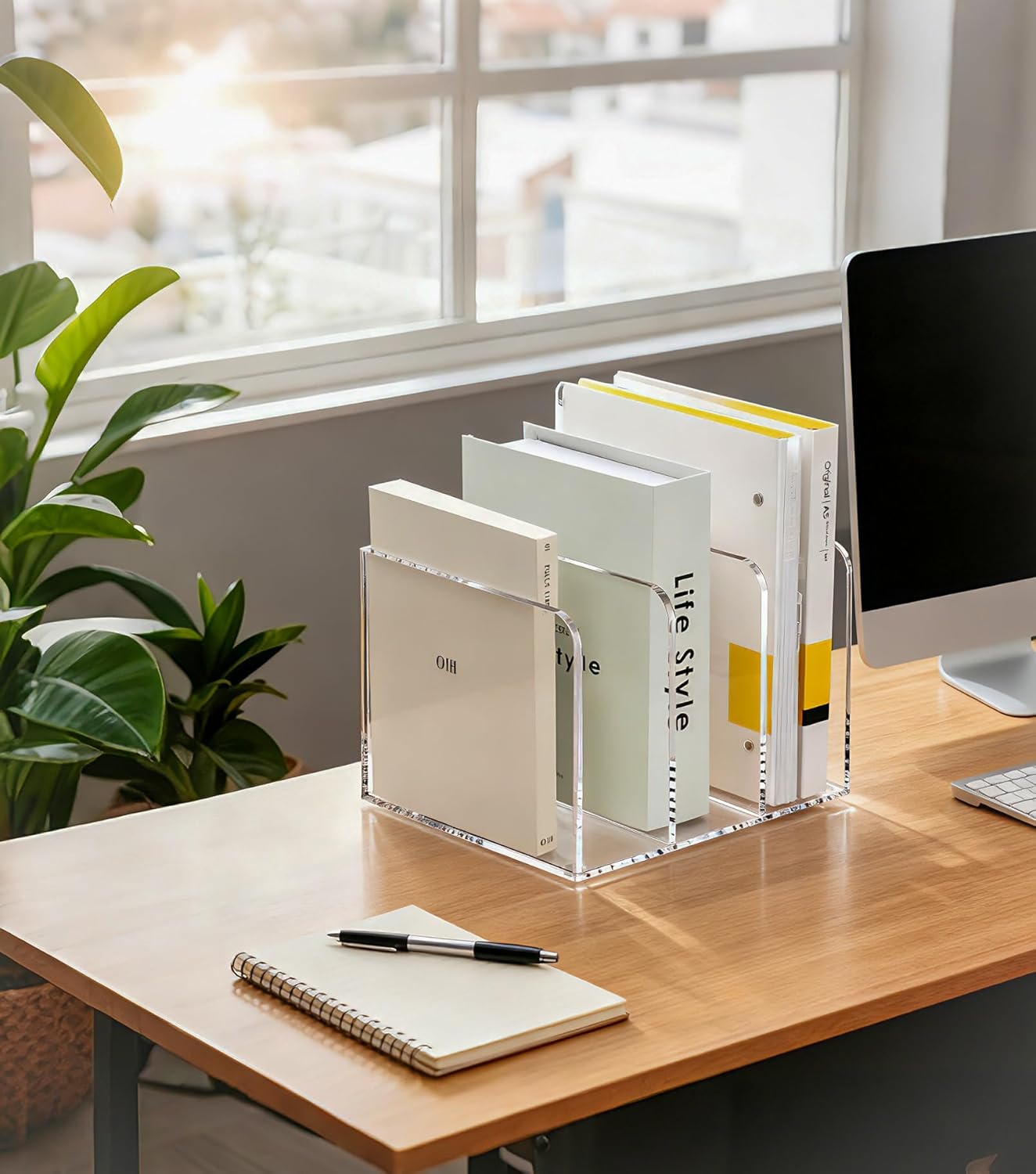 High-Capacity File Organizer: With 3 large compartments, this acrylic sorter stores up to 600 sheets per slot. It’s the essential tool for organizing standard letter-size documents, folders, and magazines, helping you maintain a clutter-free workspace in any home office, classroom, or bookstore.