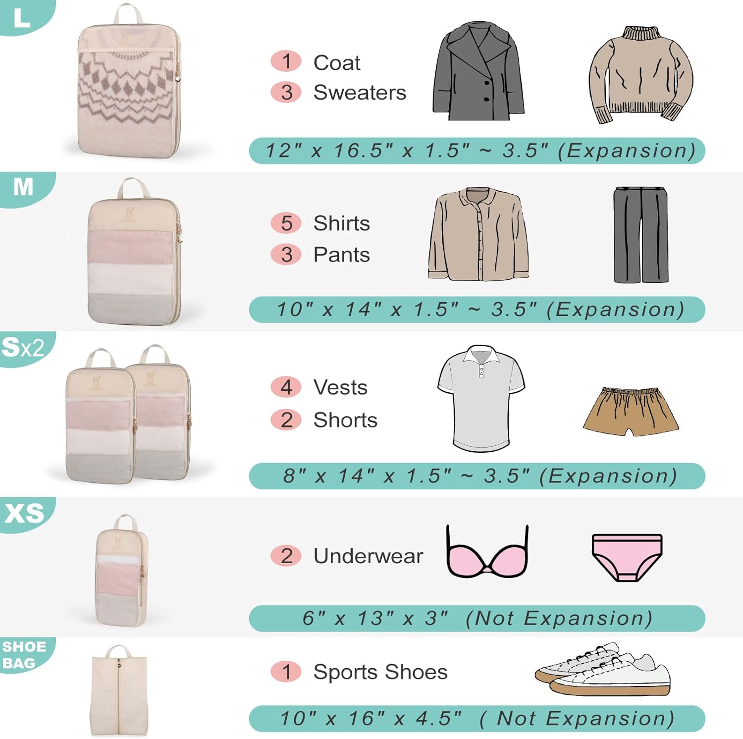 Maximize Packing Efficiency: Lighter, Smarter Cubes:Experience the ultimate in organized travel with our compact yet capacious compression packaging cubes. Engineered to snugly accommodate all your essentials, these cubes ensure effortless organization and swift unpacking. Enhanced with upgraded socket design, our cubes keep your attire pristine and wrinkle-free throughout your journey.