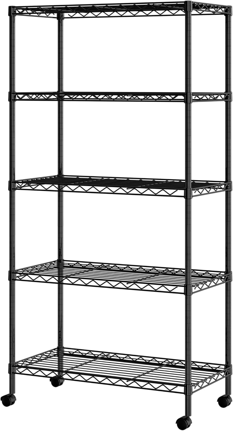 Seville Classics Solid Steel Wire Shelving Storage Unit Adjustable Shelves Organizer Rack, for Home, Kitchen, Office, Garage, Bedroom, Closet, Black, 5-Tier, 30″ W x 14″ D (New Model)