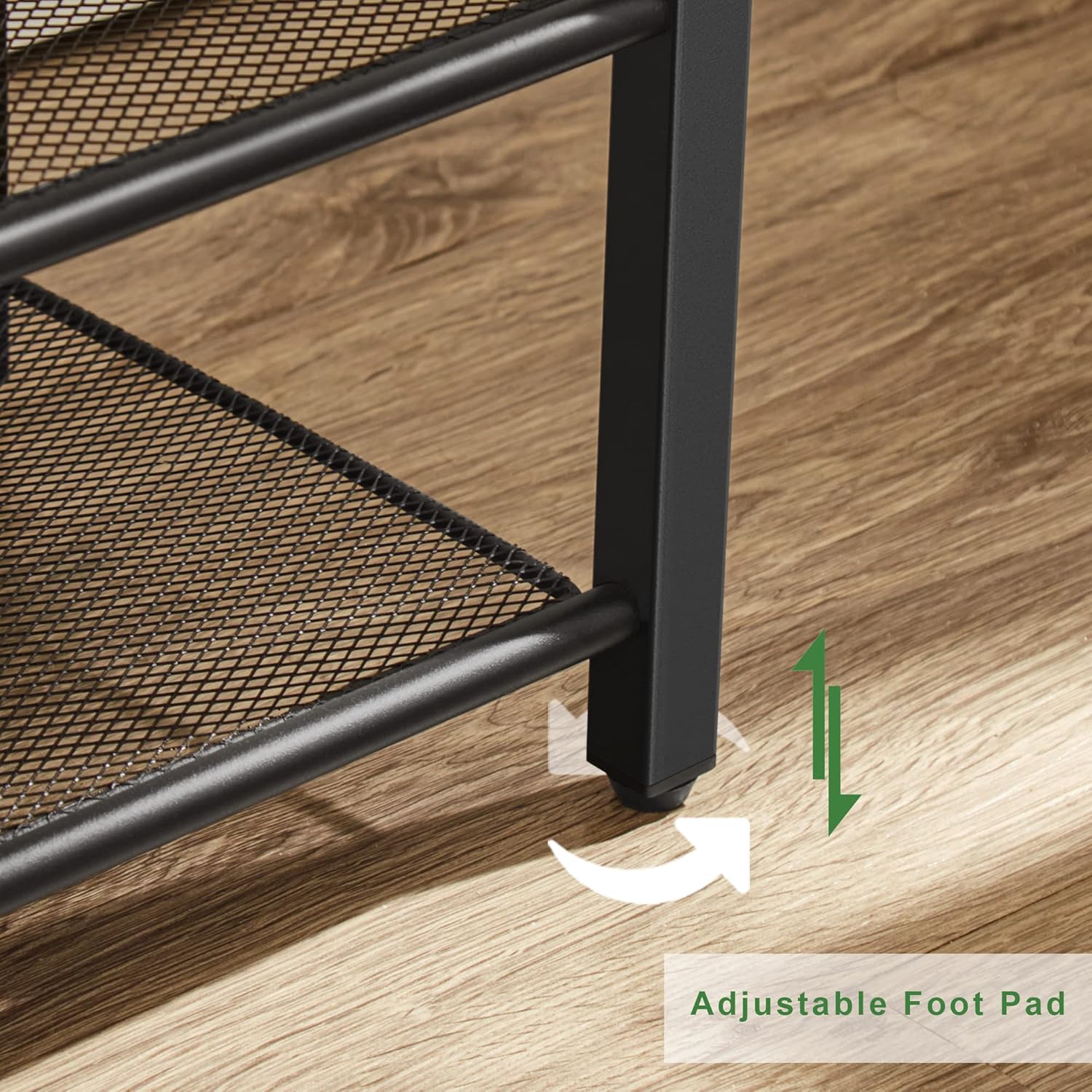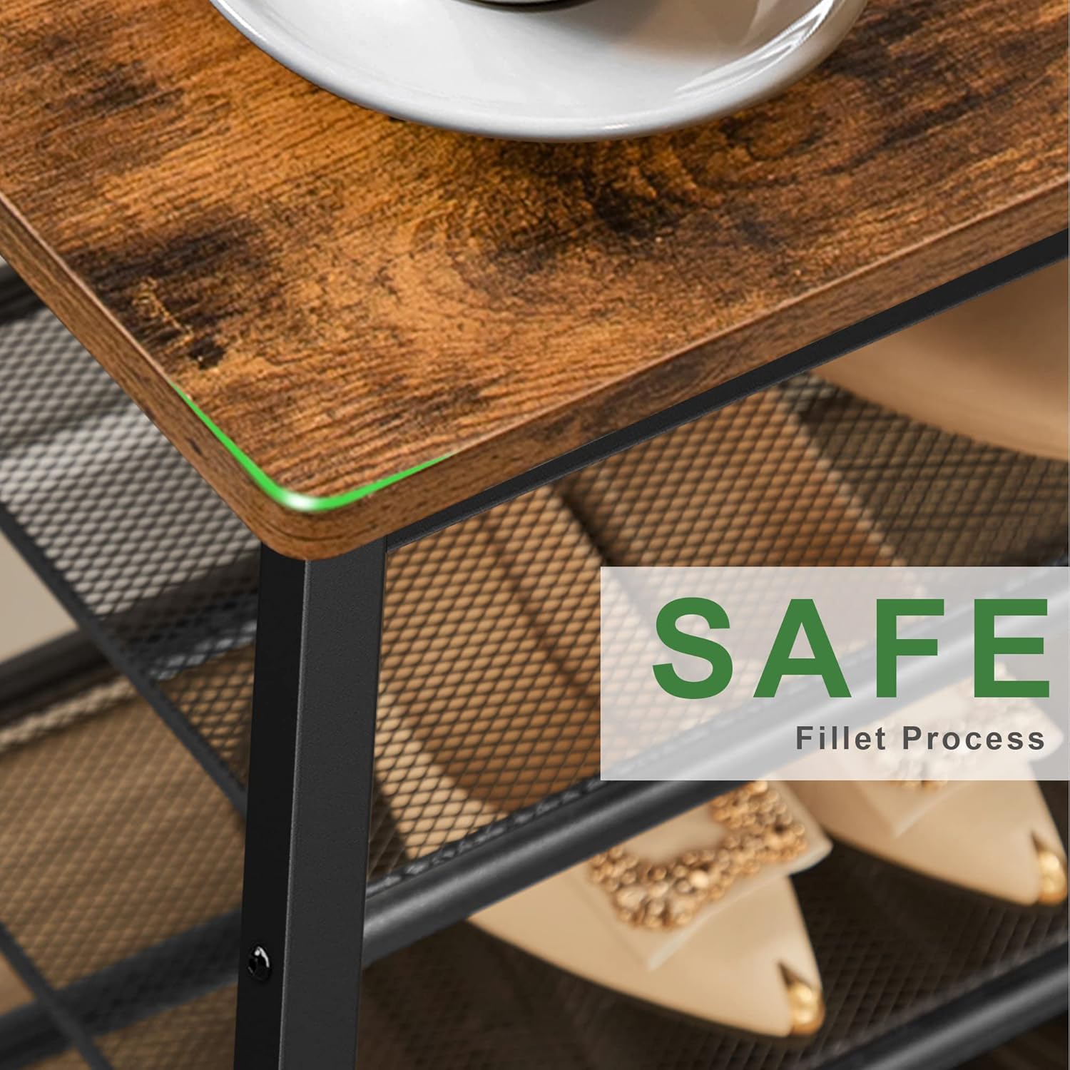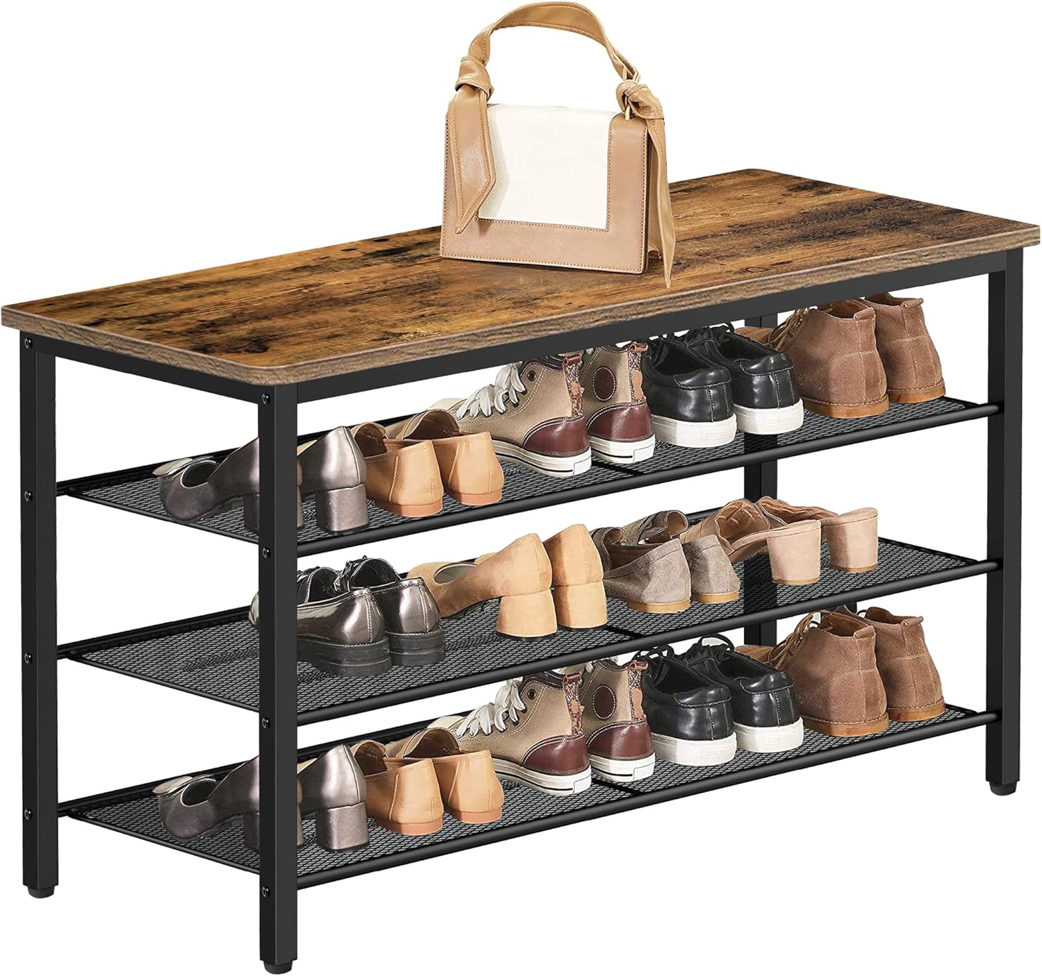 Shoe Bench, 4-Tier Shoe Rack 31.5”, Storage Entry Bench with Mesh Shelves Wood Seat, for Entryway, Hallway, Living Room, Stable Metal Frame and Easy Assembly, Rustic Brown SB01BB016