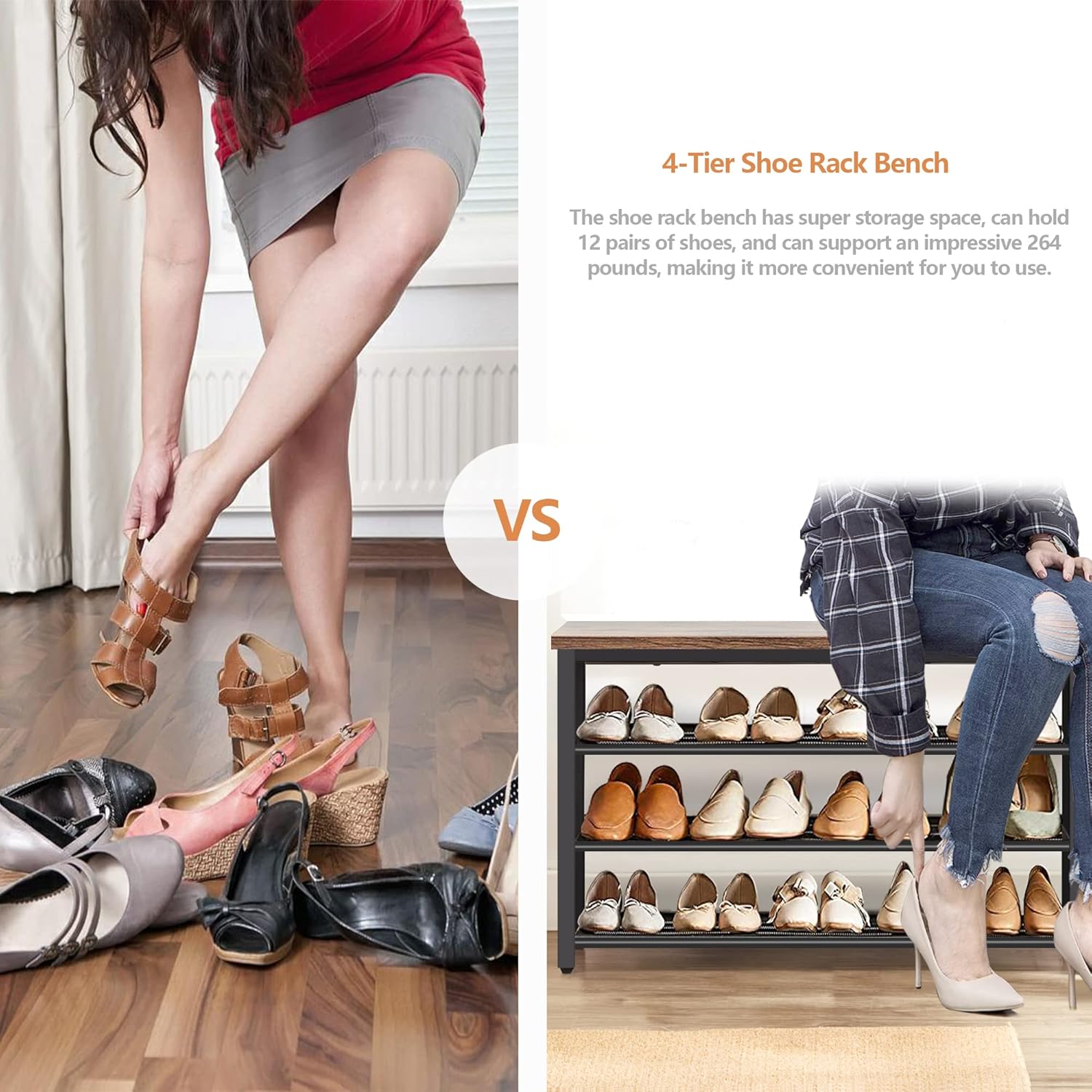 【4-Tier Shoe Rack for Entryway】The shoe rack bench has super storage space, can hold 12-15 pairs of shoes,Say bye to the messy shoe pile! This shoe storage rack fits for your entryway, front door, hallway, foyer, living room or bedroom.