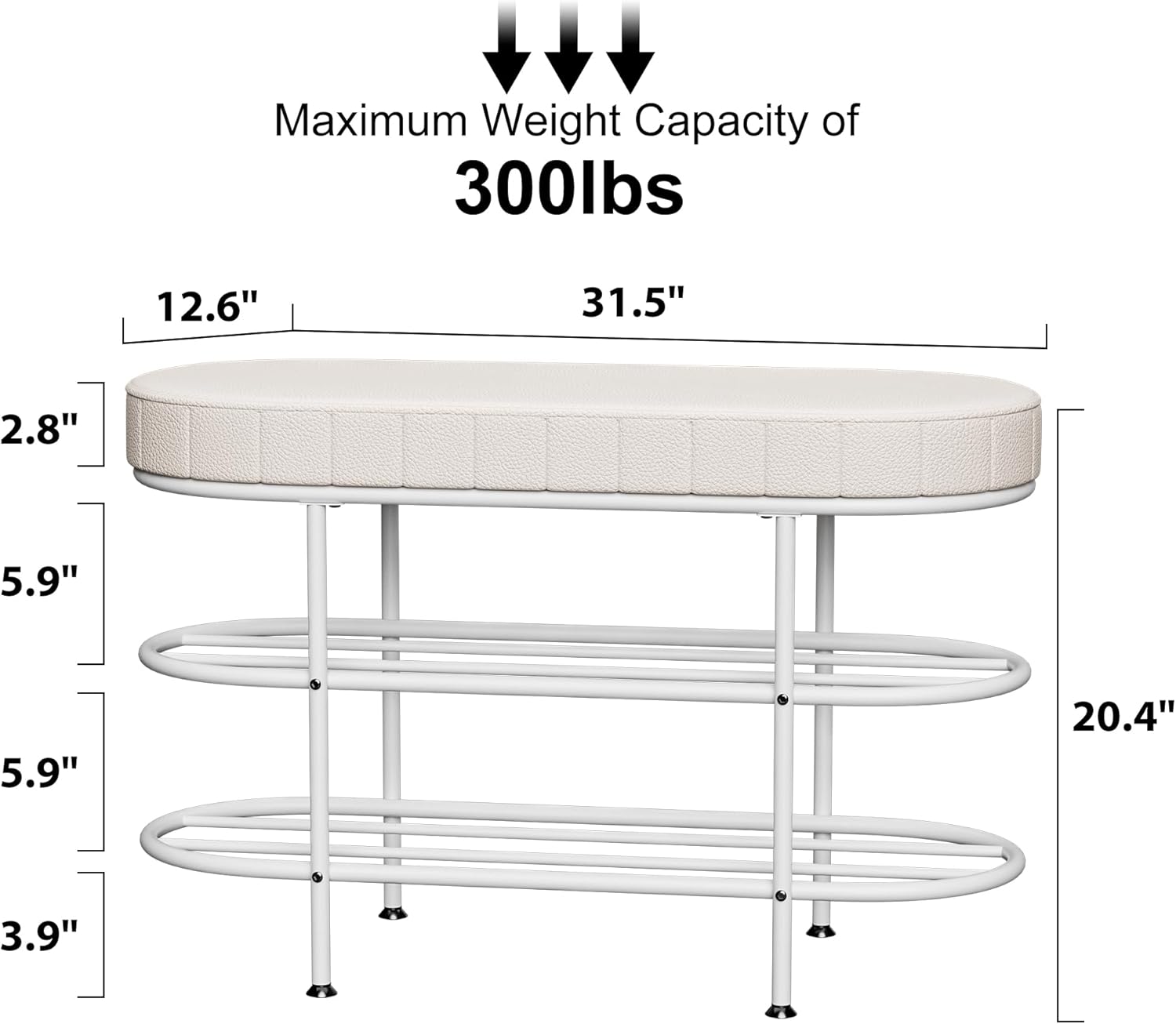 Shoe Bench with Cushion, 3 Tier Shoe Rack Storage Bench, Entryway Bench, for Hallway, Entryway, Bedroom, Living Room, Holds Up to 300 lb (White,31.5″)