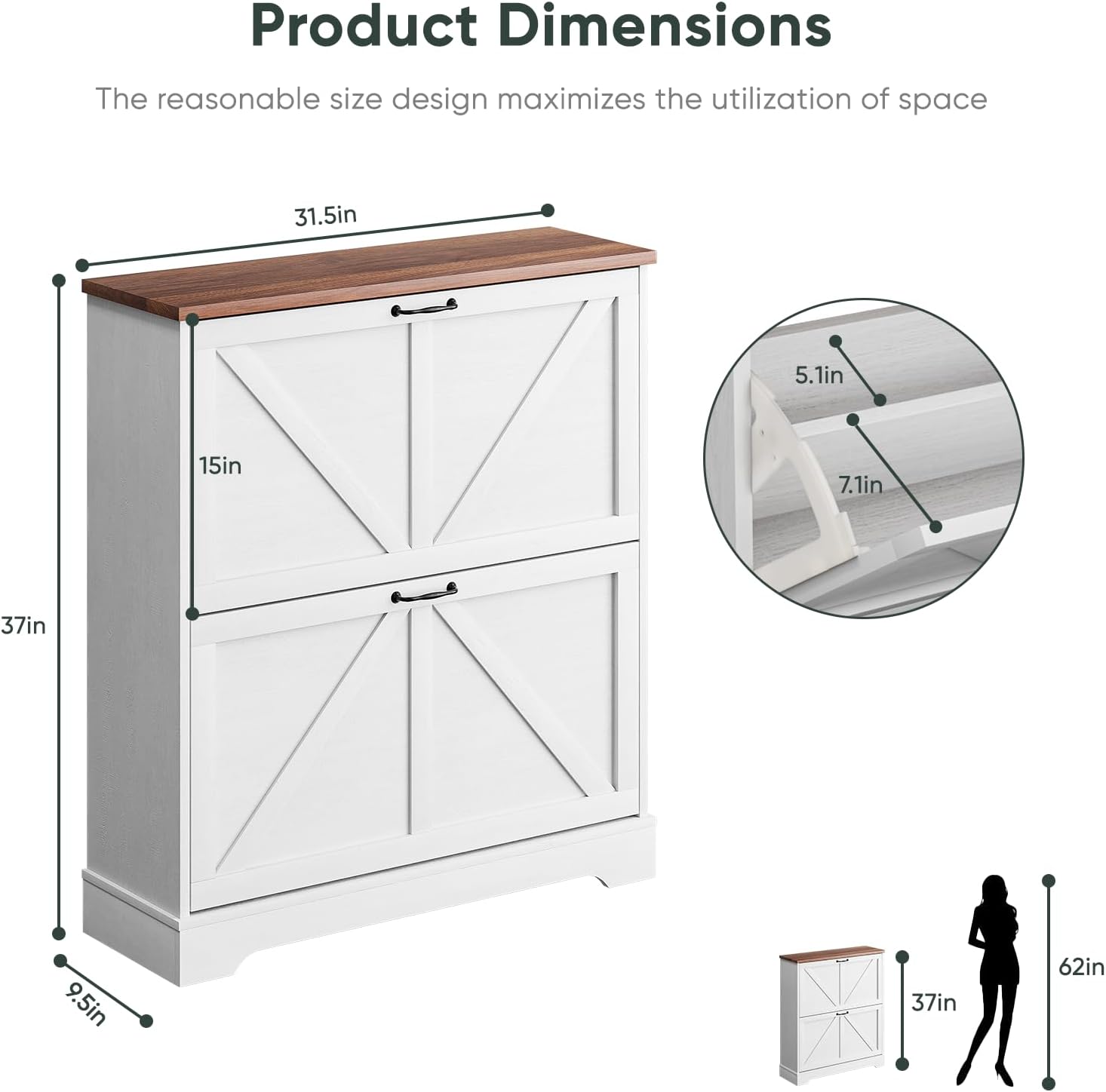 Farmhouse Style: Showcasing a captivating farmhouse-inspired design with a timeless aesthetic and rustic finish, this shoe rack cabinet not only offers practical storage but also elevates the visual appeal of your entryway. The organized arrangement is sure to uplift your mood throughout the day!