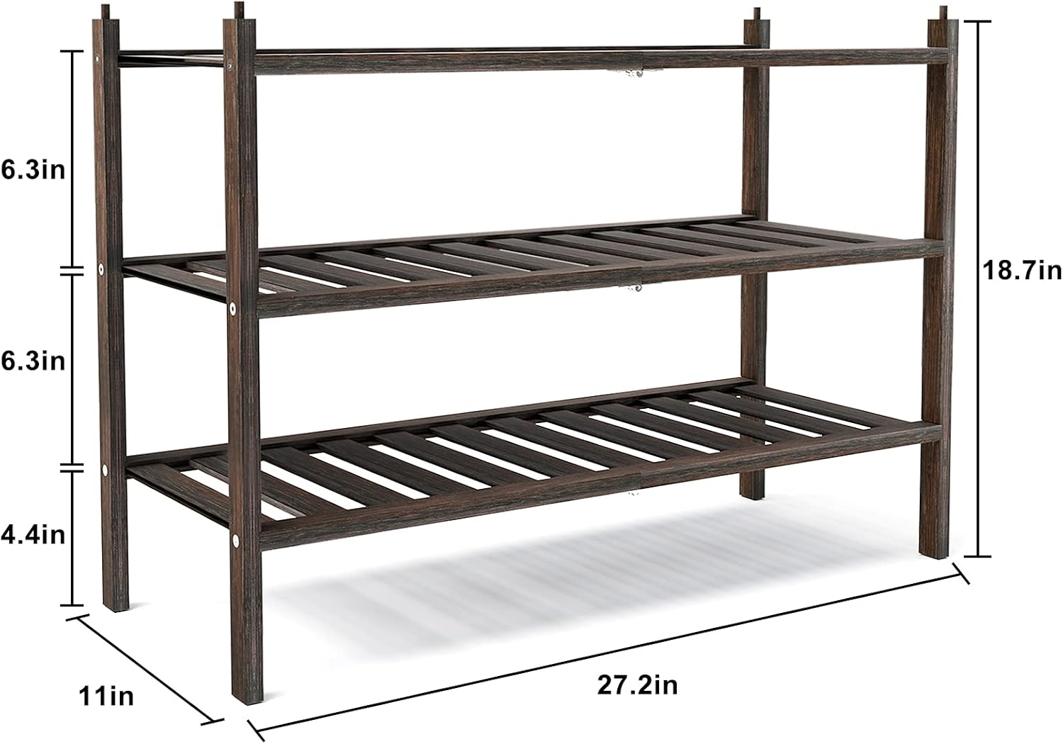Shoe Rack, 3-Tier Bamboo Stackable Shelf Storage Organizer, Stand for Closet, Entryway, Hallway, Bathroom and Living Room(Mocha)