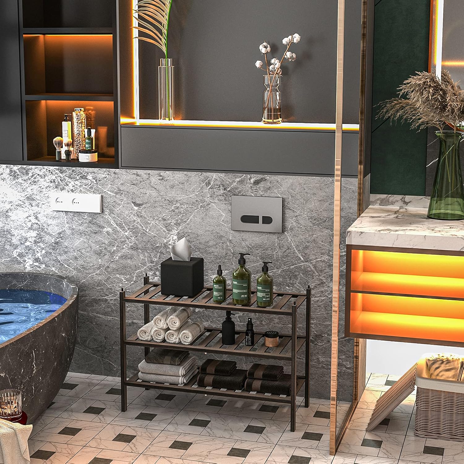 【High-Quality Bamboo Materials】 We choose bamboo grown in a natural alpine region. The texture is hard, the structure is firm, and the service life is long. After high temperature carbonization, the product is waterproof and not easy to crack and deform.