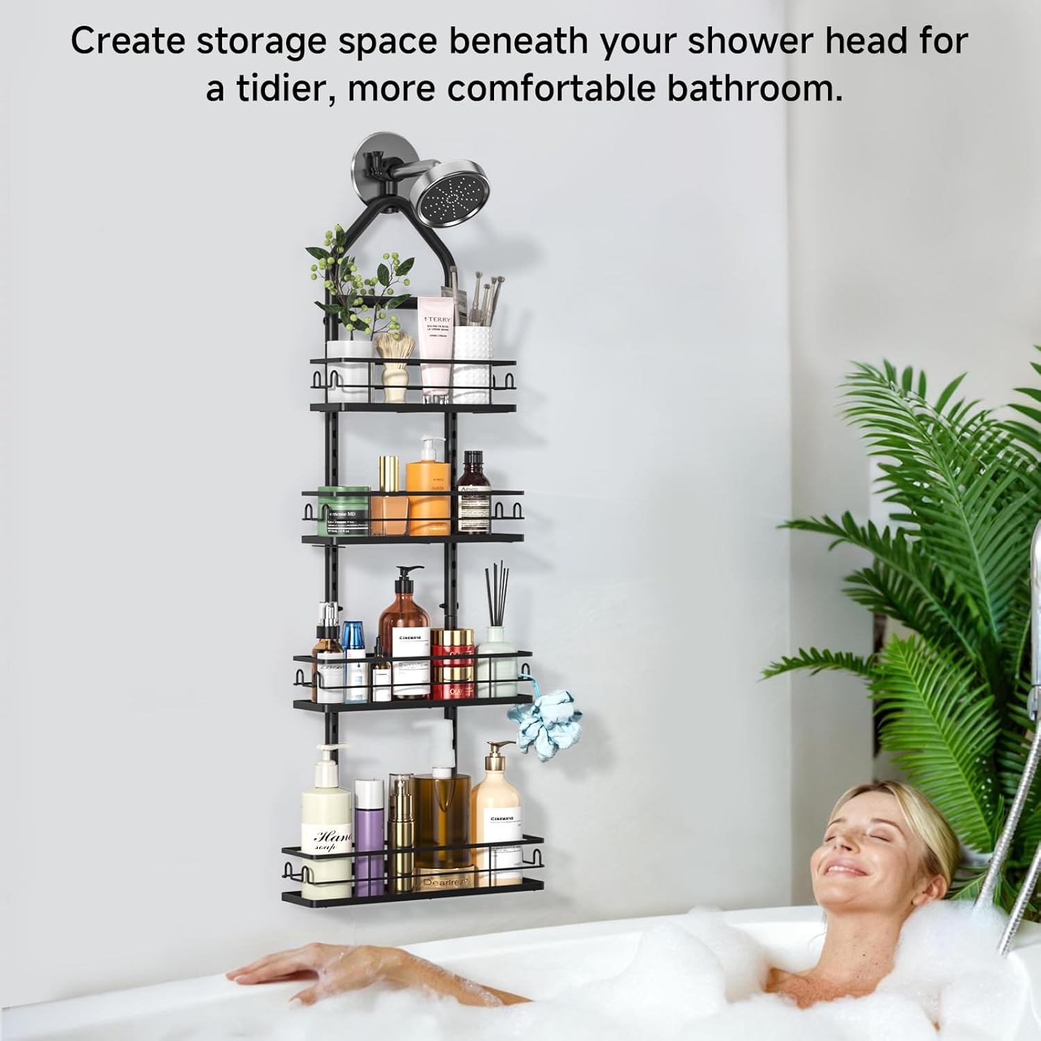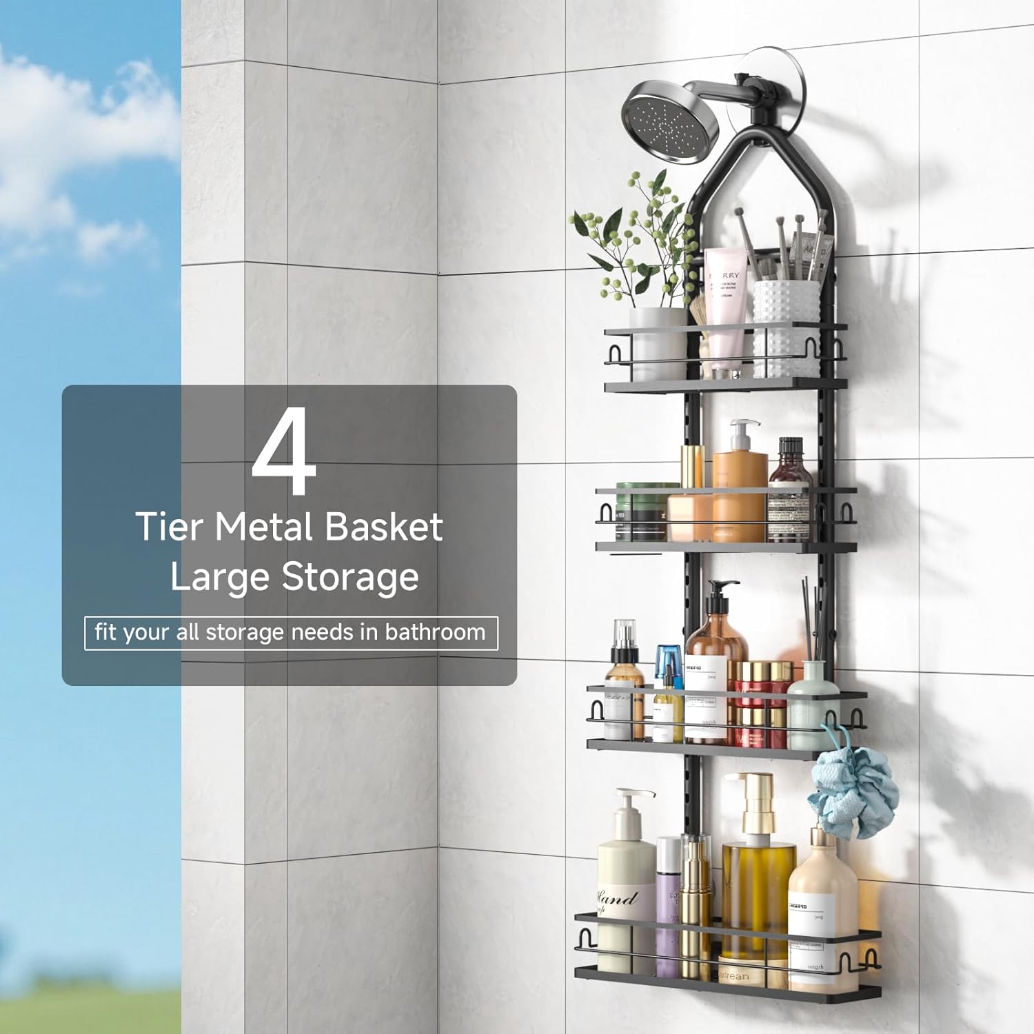 Professional 4 Tier Shower Caddy: This over shower head caddy provides enough space to accommodate all your essentials, Perfect for home, apartments, college dorms, RVs, gym locker rooms, and other compact spaces where organization matters, The large shower caddy hanging maximizes your shower storage space and keeps your toiletries in order