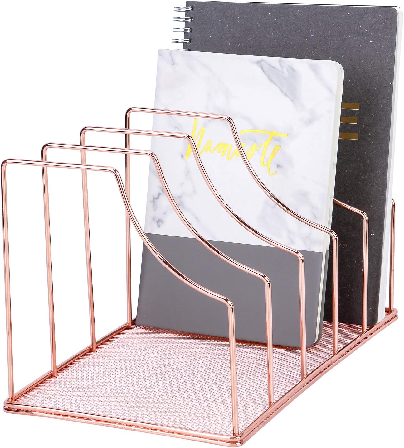 [Modern & Attractive] Unique Wire Geometric Shape + Mesh Base[Vertical Design] to keep your papers & files uprightly stand in a large view for easier access.[Plated Construction] Effectively make it not get rusty or dusty easily, provide a durable and comfortable use.[ 5 Sections] Each section in suitable width to greatly fit with regular sized mails, files, folders, magazines, books, records or other desk accessories.[Decorative & Functional] This rose gold desk sorter in suitable size is a nice helper to your home, dorm, classroom, office etc.[Practical Gift] For its eye-catching look & utility functions, highly recommend as a stationery gift for your beloveds, nice for students, office workers, the elders etc.