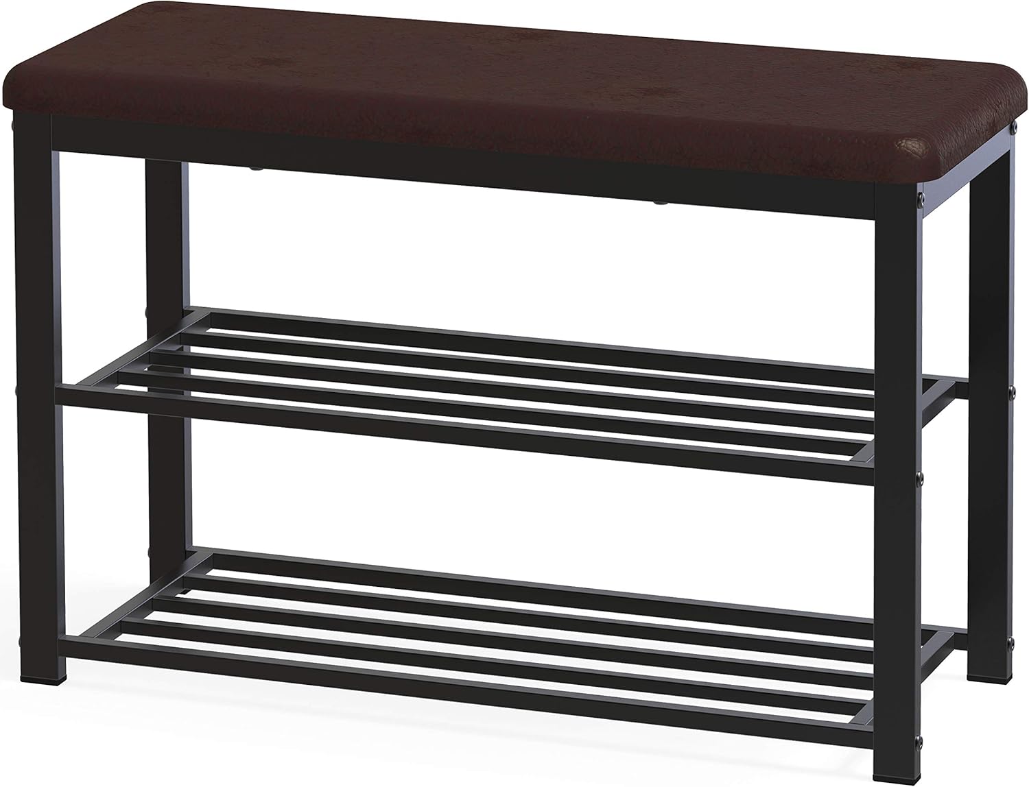 The beautiful surface is finished in faux leather brown with steel frames in black.The multifunctional shoe rack is Perfect for the Living room, bathroom, office, kitchen, etc.The storage space can store various items to keep things organized and clean.Simple, easy to assemble…