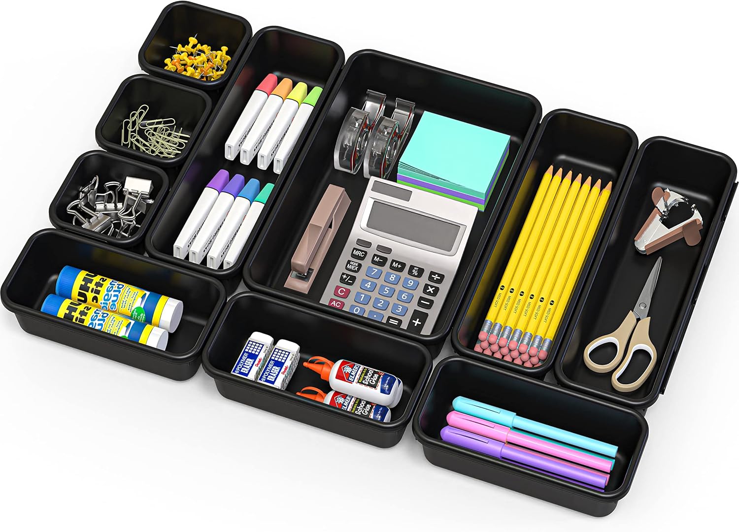 Simple Houseware Interlocking Desk Drawer Bins Organizer, 10 Packs, Black