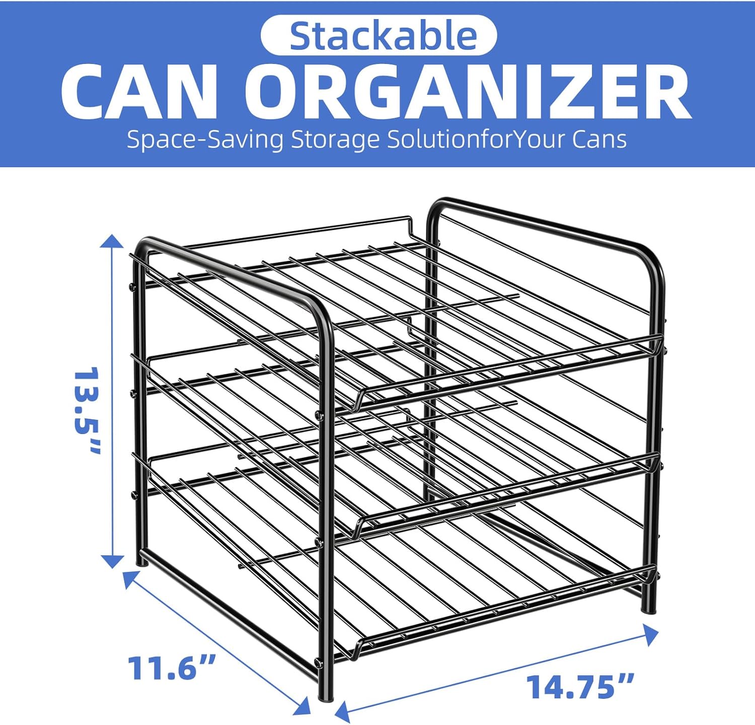 Simple Trending Can Rack Organizer, Stackable Can Storage Dispenser Holds up to 36 Cans for Kitchen Cabinet or Pantry, Black