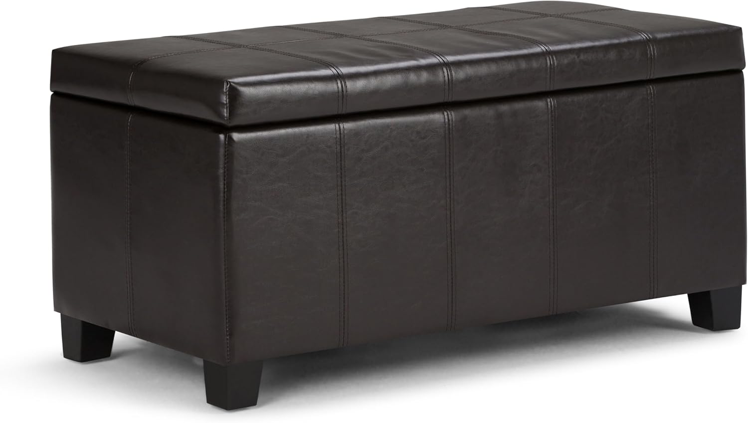 Be the first to review “SIMPLIHOME Dover 36 inch Wide Contemporary Rectangle Storage Ottoman Bench in Tanners Brown Vegan Faux Leather, Assembled, For the Living Room, Entryway and Family Room”
