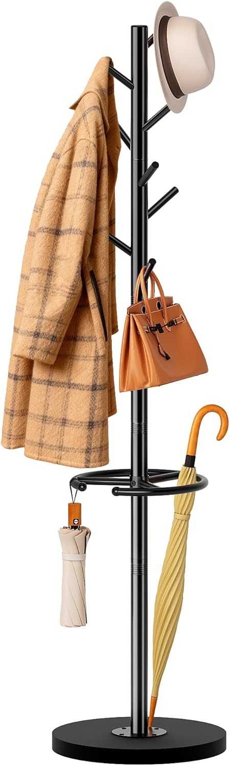 Upgraded with Detachable Umbrella Stand:This coat rack freestanding features a built-in umbrella holder, giving wet umbrellas their own dedicated spot. Plus, the holder is easily removable, giving you the flexibility to adapt your space as needed.