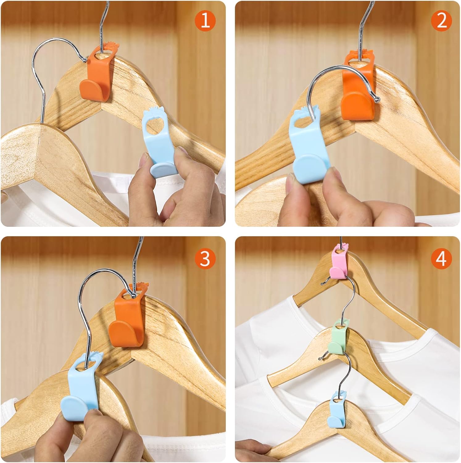 Ultra Space Saving: SLMT clothes hanger hooks help to create extra hanging space by using previously wasted vertical space.This decreases the amount of hangers on the main rod.You can create a cascade of clothes that doubles and even triples closet space