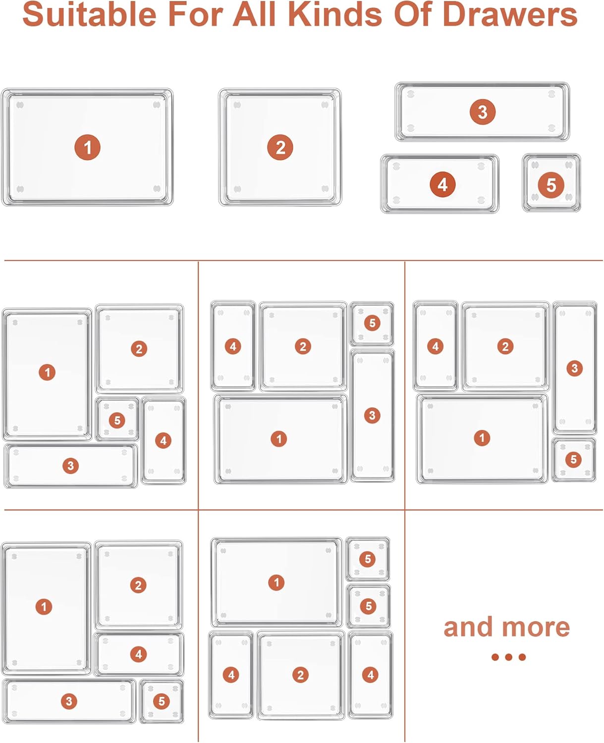 Durable and Non-Slip Material – The clear drawer organizers made by unbreakable plastic, ensure the long life of use. Silicone non-slip pads at the bottom of the bin prevent the box from moving freely when dragging the drawer.