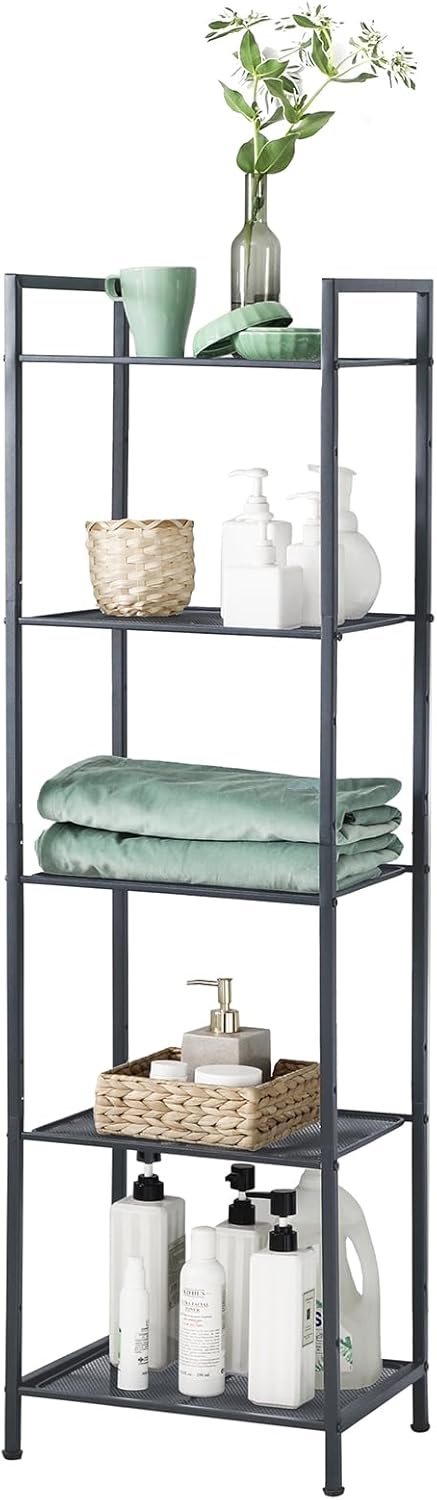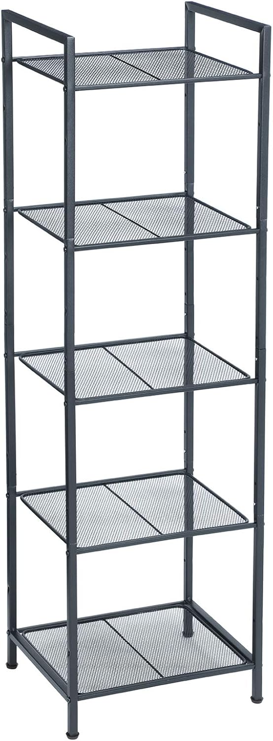 SONGMICS 5-Tier Storage Rack, Bathroom Shelf, Extendable Plant Stand with Adjustable Shelf, for Bathroom, Living Room, Balcony, Kitchen, Black UBSC35BK, 11.8 x 15 x 50.4 Inches
