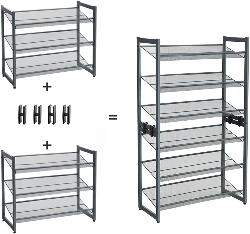 2 identical items to get a full 6-tier rack while using the same floor space, double storage capacity, and keep all your family’s shoes organized.