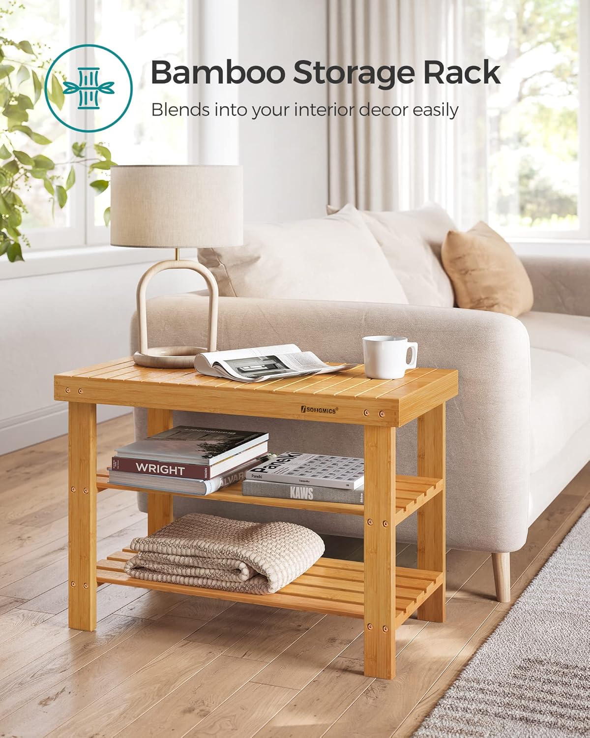 Spacious Storage: 2 roomy shelves keep your shoes organized, while the top shelf is perfect for bags or keys.Versatile Use: Perfect for your living room, bedroom, bathroom, and more.Sturdy Build: Made from premium bamboo, it can support up to 286 lb on the top and 22 lb on each shelf.Modern Design: Its simple yet stylish appearance adds a welcoming and warm feeling to your home.Easy Assembly: Simple structure and clear instructions make it a breeze to set up in minutes.