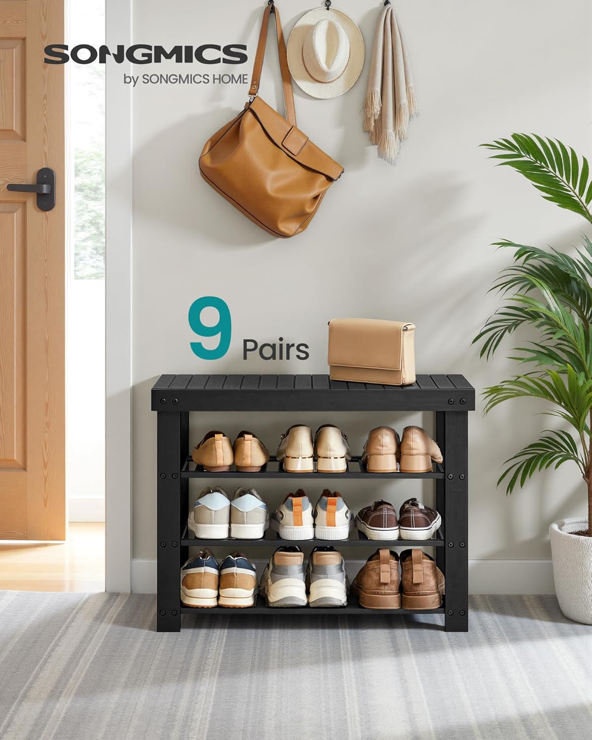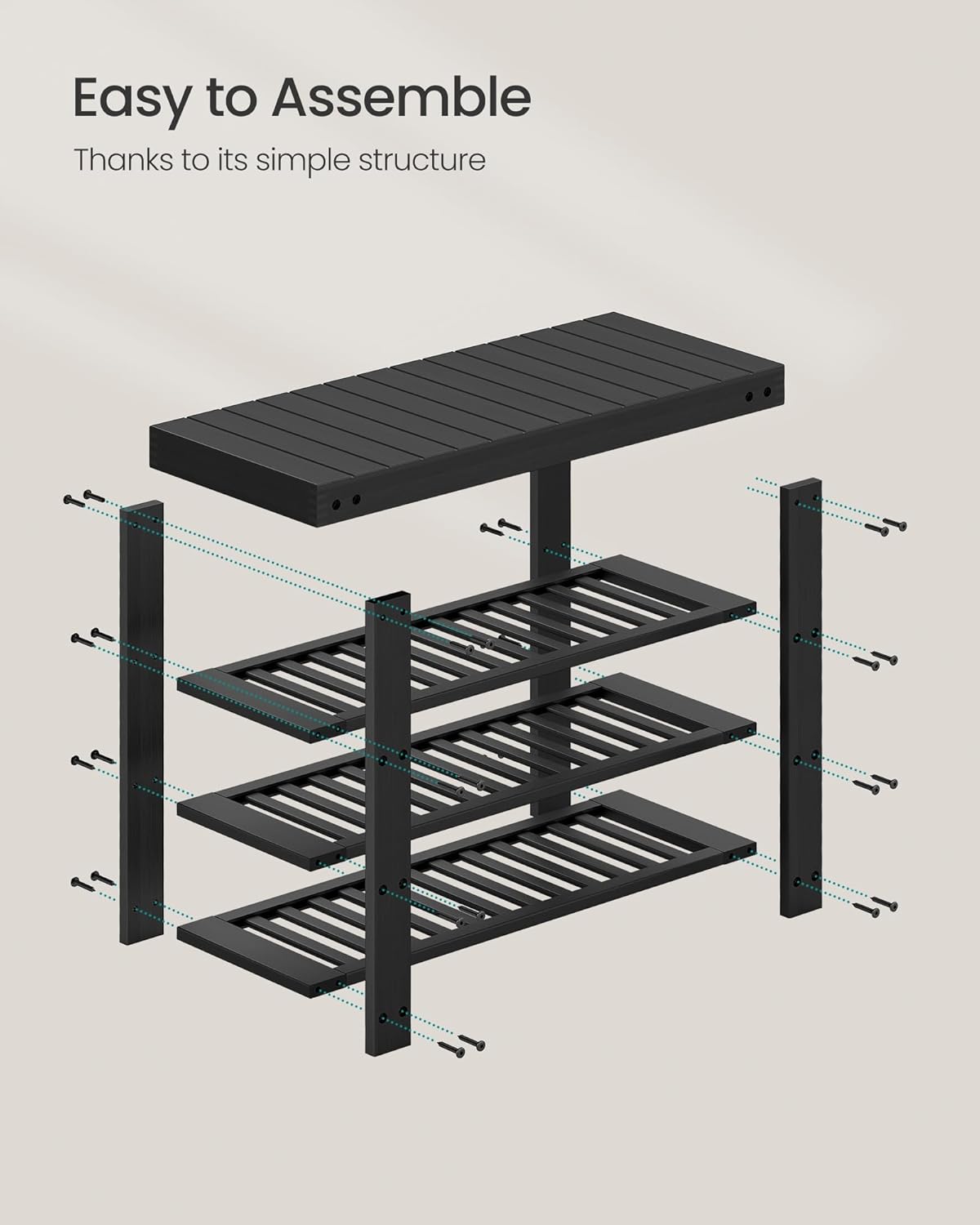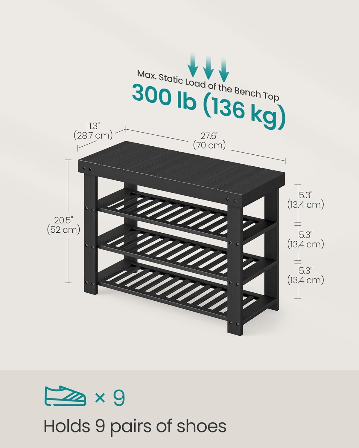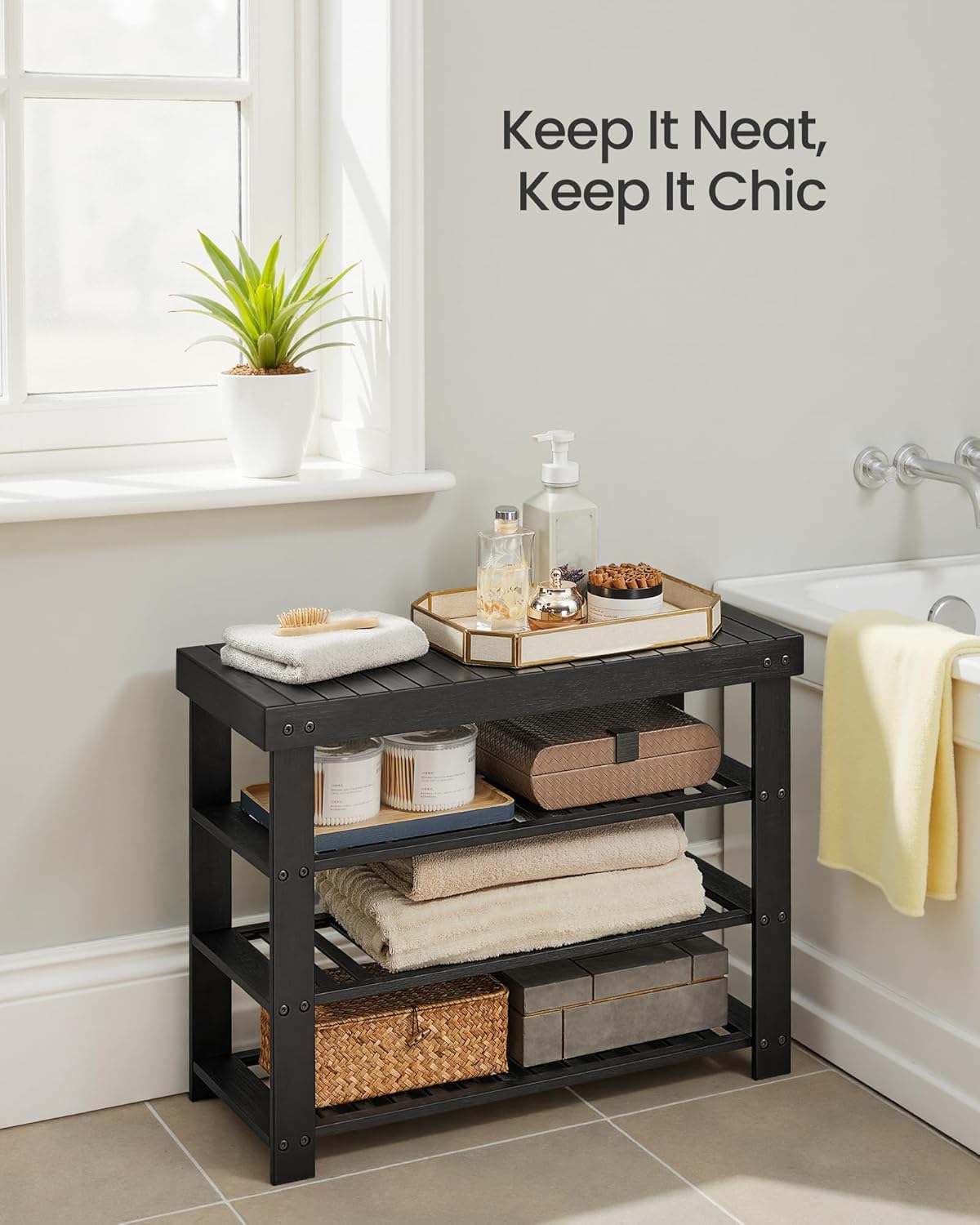 SONGMICS Shoe Rack Bench, 4 Tier Bamboo Shoe Storage Organizer, Entryway Bench, for Living Room, Bathroom, Bedroom, 11.3 x 27.6 x 20.5 Inches, Ink Black ULBS370BH01