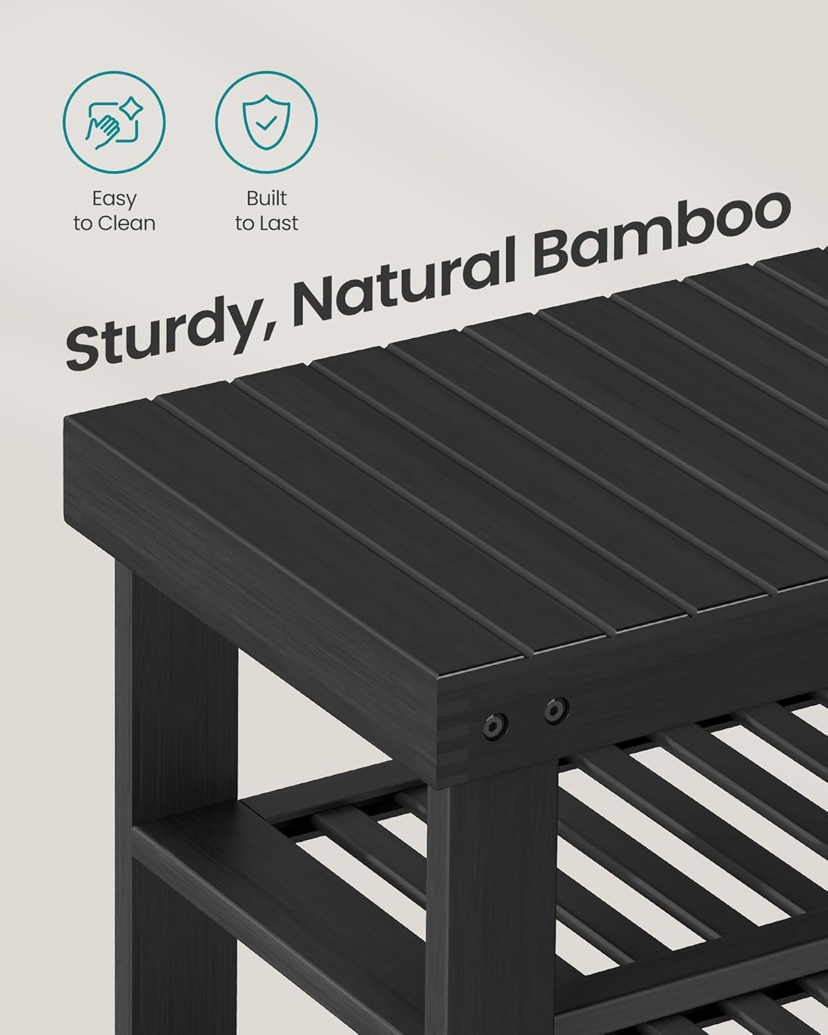 Sturdy Build: Made of premium natural bamboo, this entryway bench supports up to 300 lb on top and 22 lb per shelf, giving you a stable seat for putting on shoes and daily storage