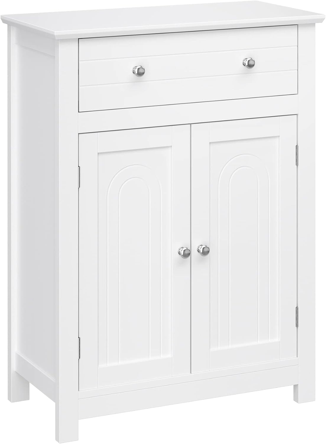 SONGMICS VASAGLE Free Standing Bathroom Cabinet with Drawer and Adjustable Shelf, Kitchen Cupboard, Wooden Entryway Storage Cabinet White, 23.6″ L x 11.8″ W x 31.5″ H, UBBC61WT