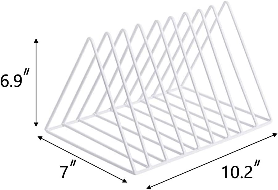 Desktop Magazine HolderColor:WhiteSize: 10.2”L X 7”W X 6.9”H.Package included: 2 x triangle shape magazine holder.