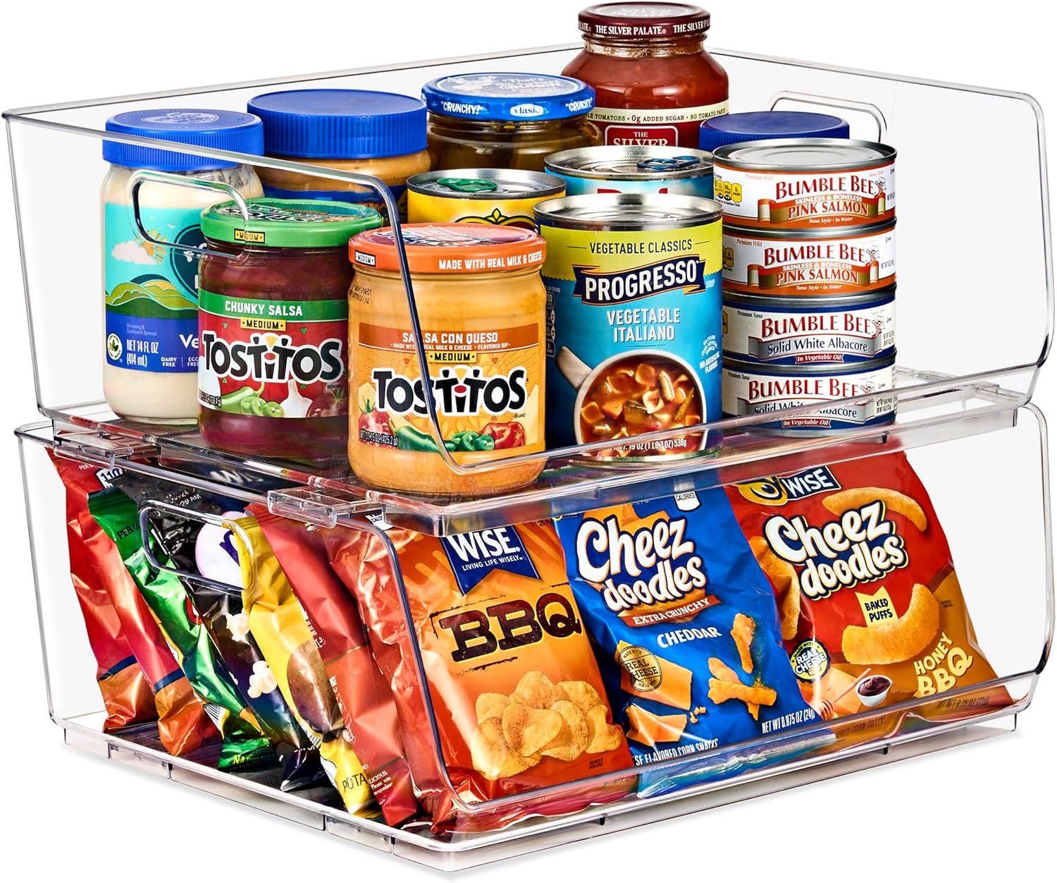 Sorbus Stackable Storage Bins – Clear Open Front Pantry Organizer for Kitchen Organization – Acrylic Bins (Large 2 Pack)