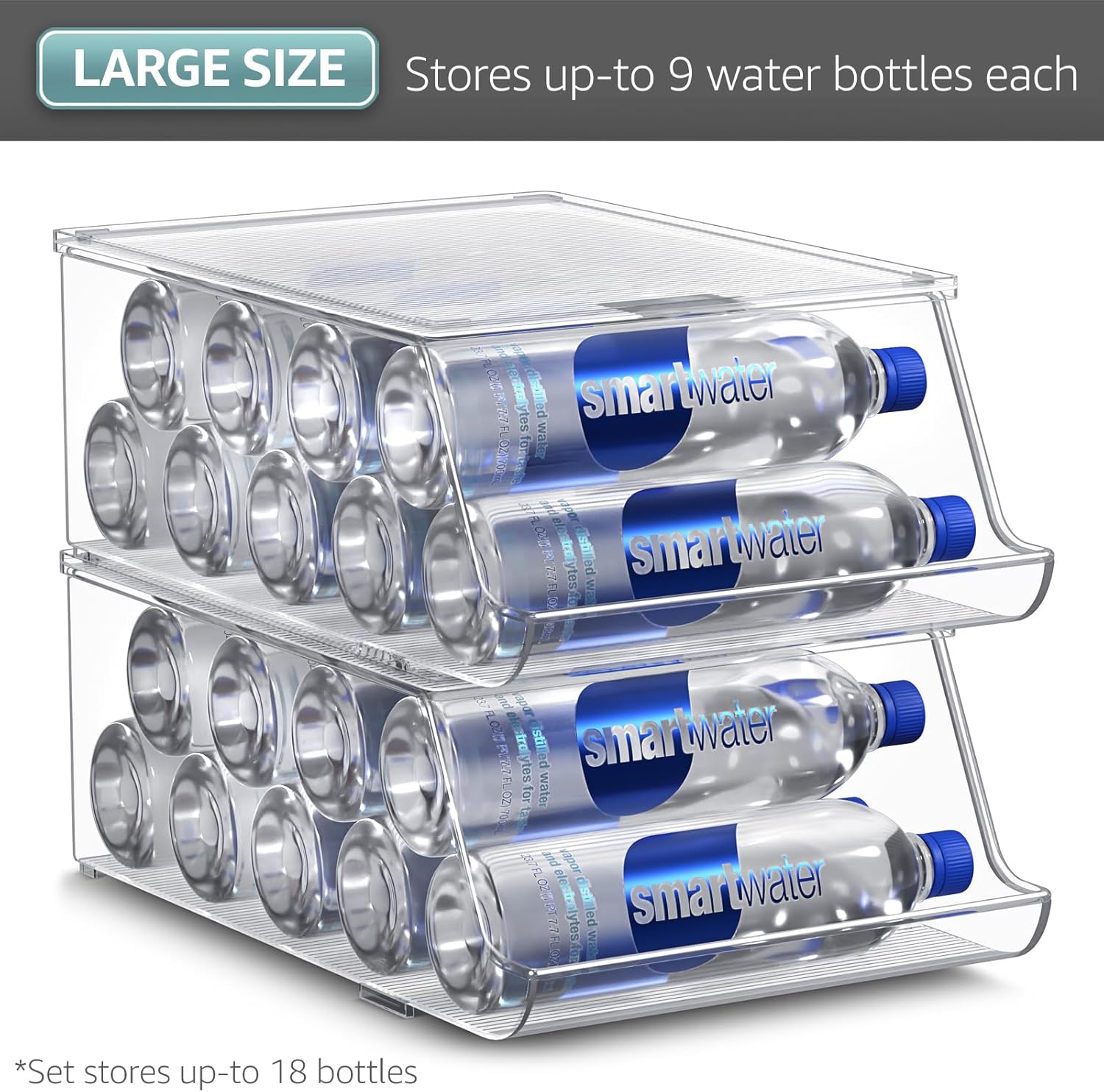Sorbus Water Bottle Organizer for Fridge with Lid – Holds 9 Bottles – Stackable Drink Organizer for Refrigerator, Pantry, or Countertop – Clear BPA-Free Plastic Bottle Storage Holder