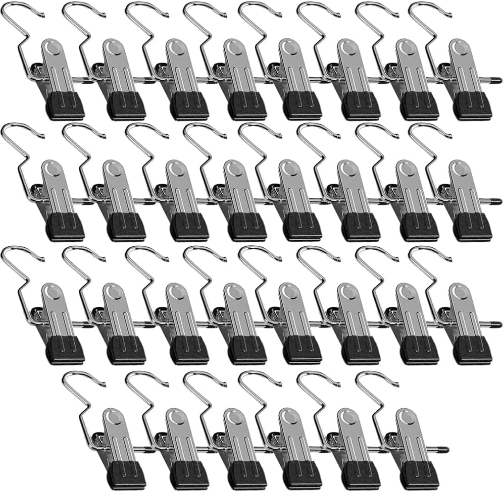 Space-Saving Clothespin Hat Pants Storage Hanging Travel Hook, Stainless Steel Boot Hangers Clips Boot Hangers for Closet, Laundry Hooks Hanging Clips Clothes Pins Socks Towel Clips (Black, 30Pcs)