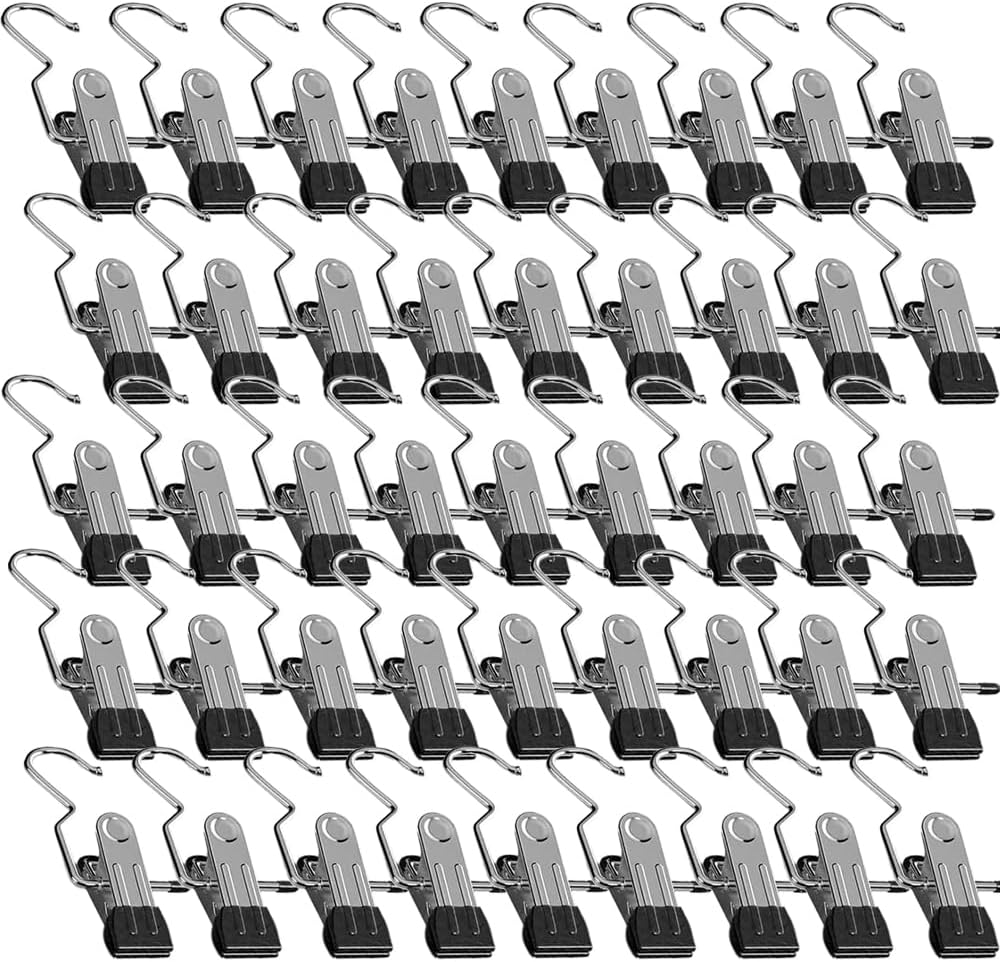 Space-Saving Clothespin Hat Pants Storage Hanging Travel Hook, Stainless Steel Boot Hangers Clips Boot Hangers for Closet, Laundry Hooks Hanging Clips Clothes Pins Socks Towel Clips (Black, 50Pcs)