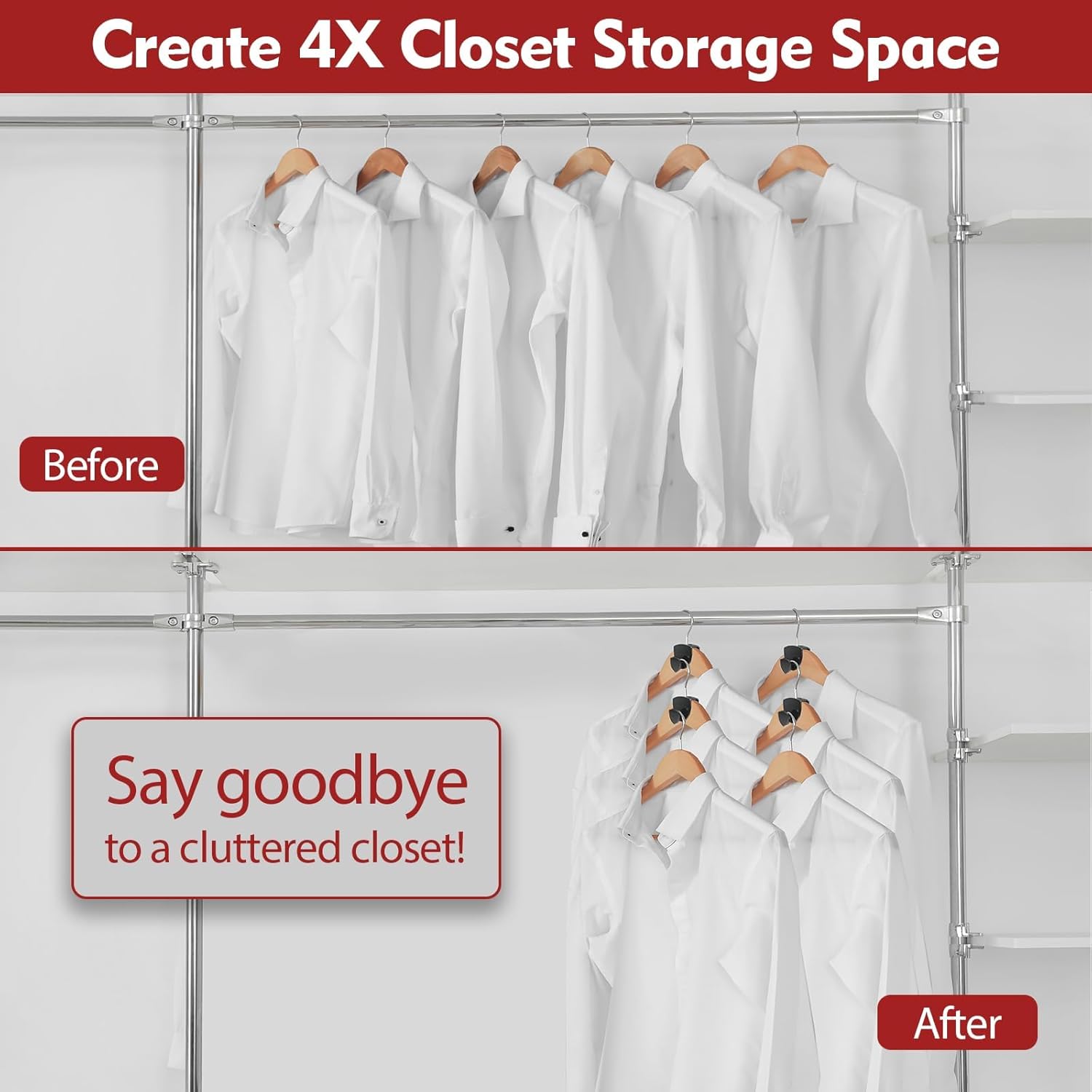 CREATE 3X CLOSET SPACE: Maximize your closet space with our space saving hanger hooks. By cascading down, you can fully utilize the bottom area of your closet while keeping garments organized, wrinkle-free, and easy to access—a smart storage solution for small spaces