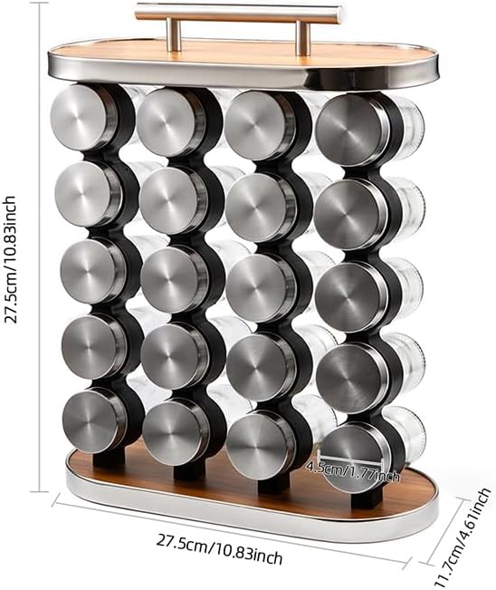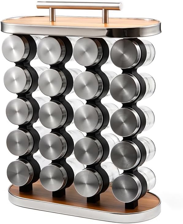 Say goodbye to cluttered countertops and disorganized spice jars. With our Stainless Steel Handheld Wood Grain 20-Jar Spice Rack Organizer, you can keep your kitchen tidy and stylish. Order now and experience the convenience and elegance of this must-have kitchen accessory!