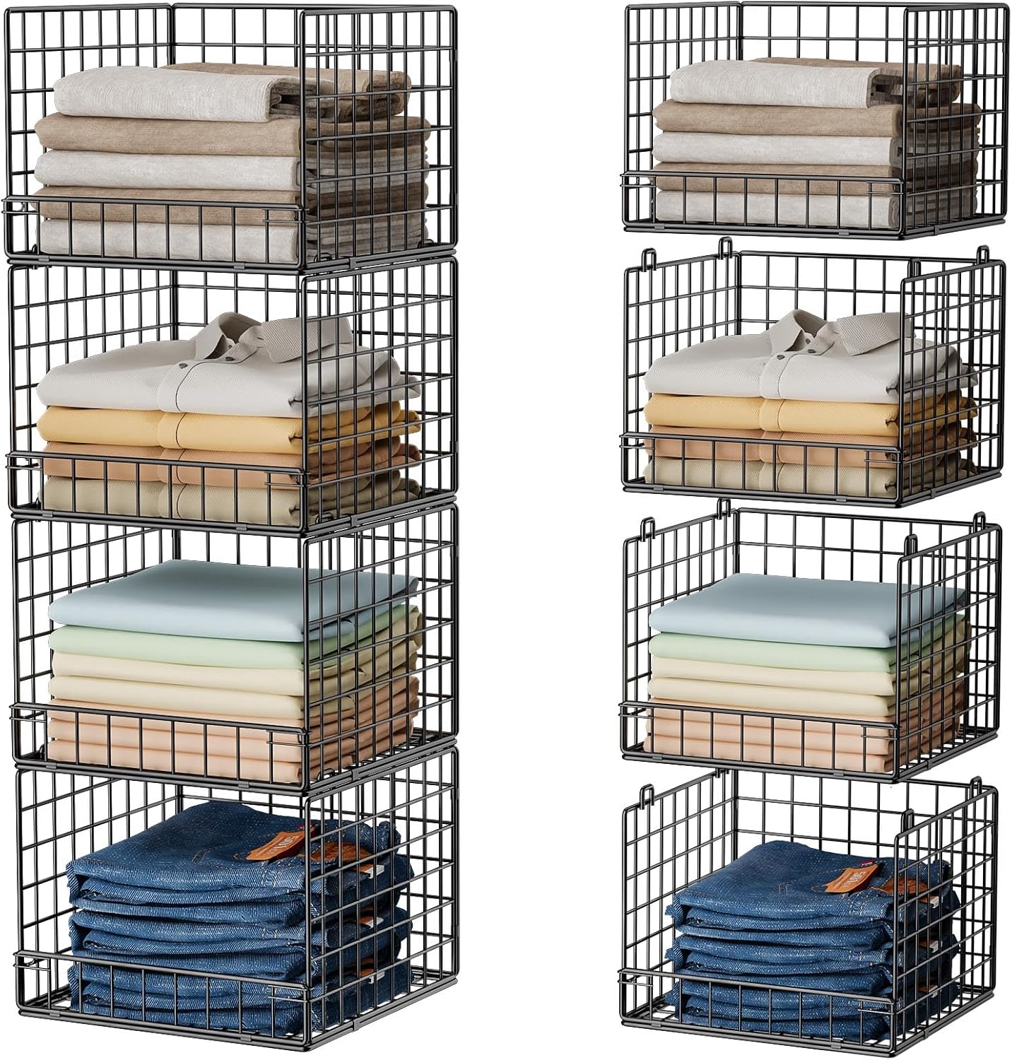 【Sturdy Iron Mesh】Made of premium iron mesh, these closet storage bins are sturdy, durable, breathable, visible, no smell. Would not bend or damage like plastic or cloth storage baskets. You can count on it is strong enough and has a good craft.