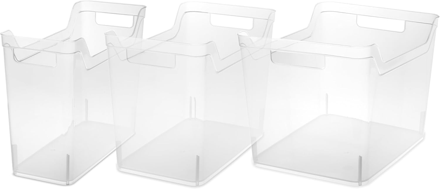 Sterilite Narrow Shelf Bin with Handles, Plastic Storage Container for Organizing Shelving, Closet, Pantry, and Countertops, Clear, 6-Pack