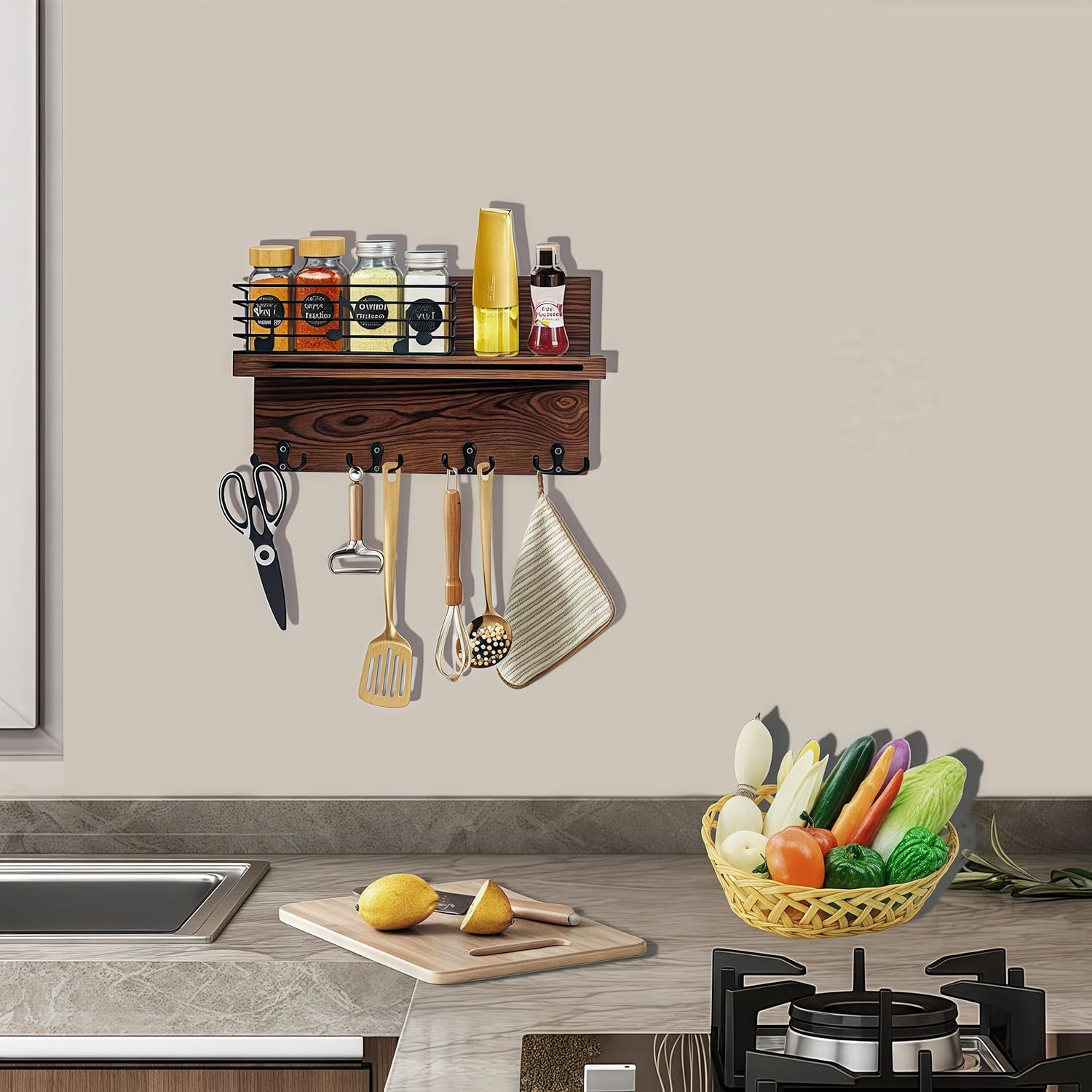 Solid Design: This key hanger wall mount is made of natural wood and comes with four metal double hooks. Its load-bearing capacity has been greatly enhanced, can let you hang more items at ease.If you own this wall key holder with shelf, it will add a touch of a homely, sweet and warm family atmosphere