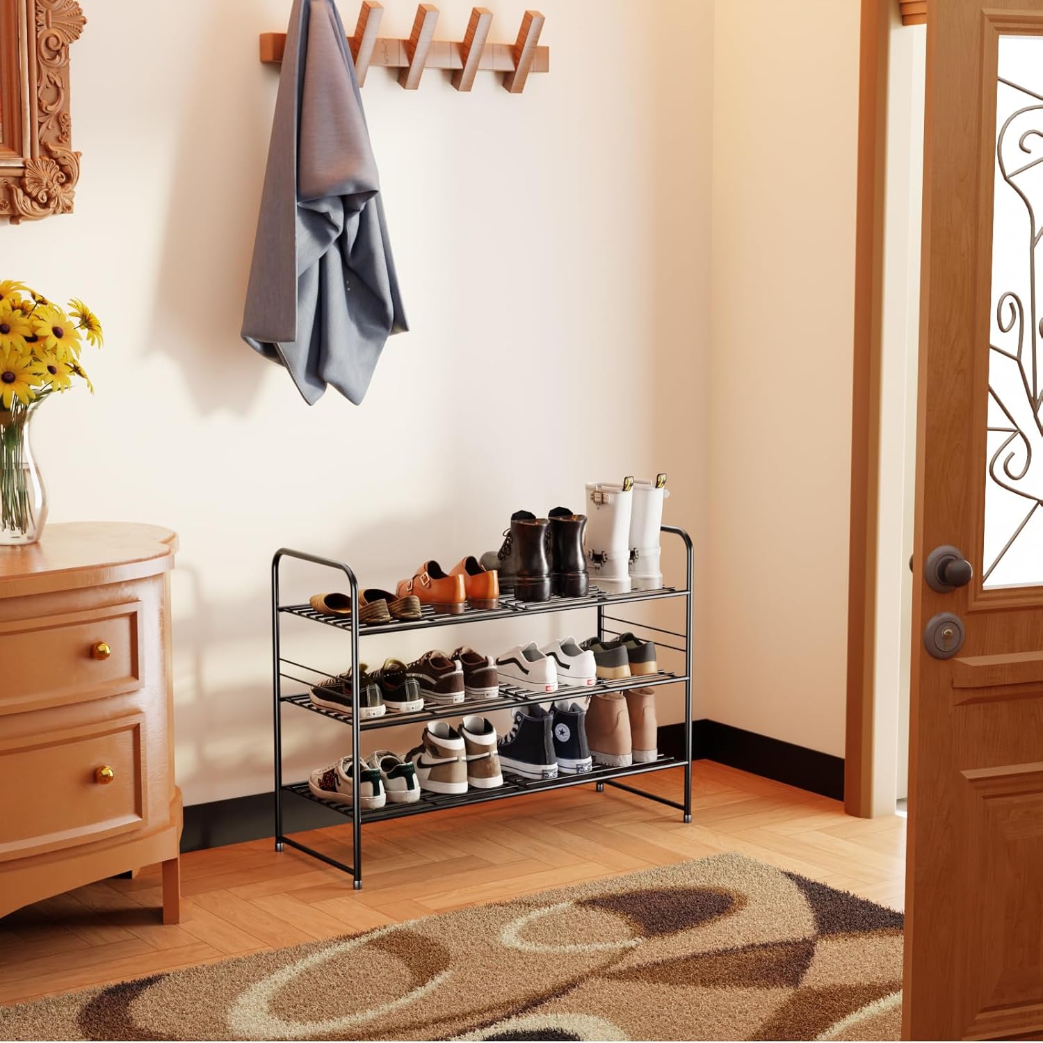 SUFAUY 3-Tier Shoe Rack, Closet Metal 33″ Wide Shoe Rack Organizer Heavy Duty, Stackable, Black