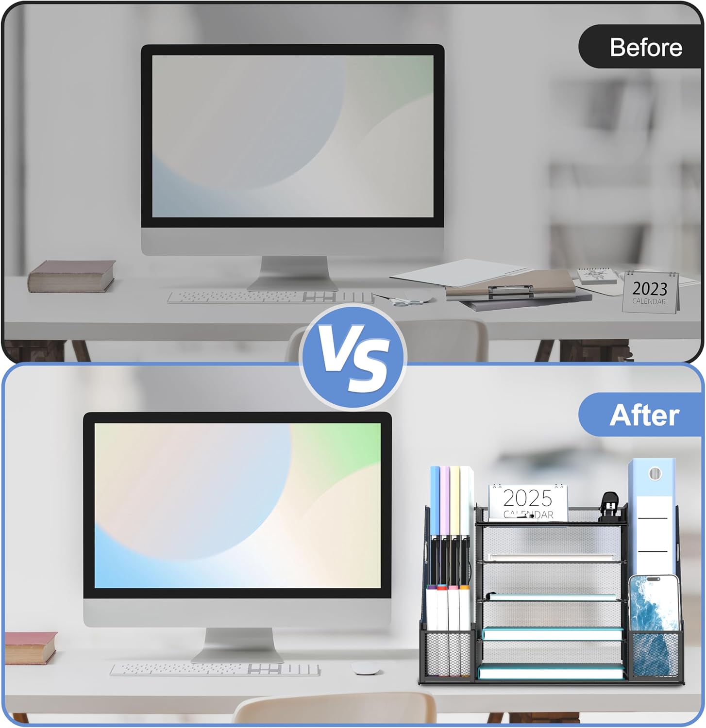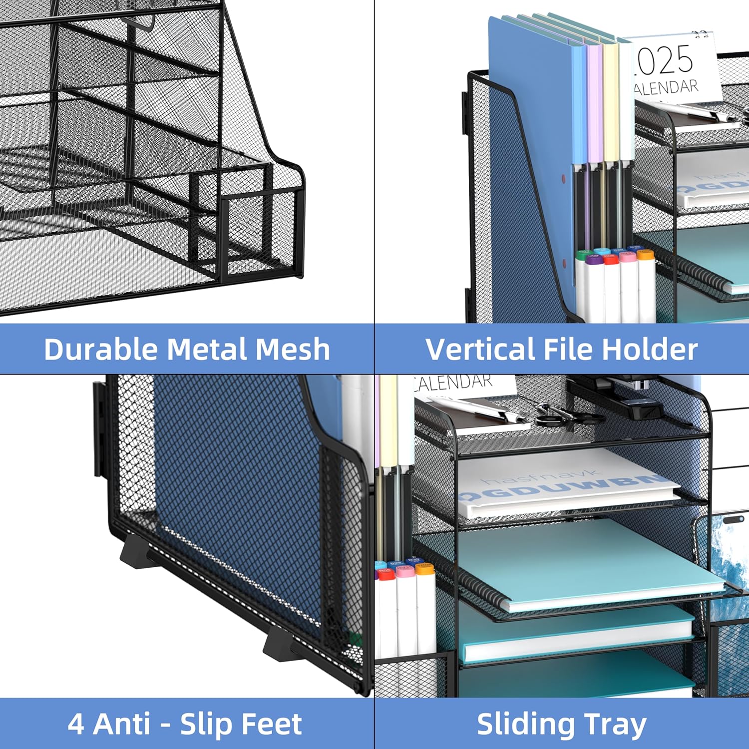 Metal Mesh, Easy to Clean – Sturdy metal mesh construction helps prevent warping and stays stable under everyday use. The open mesh design is easier to wipe clean and keeps your desktop looking neat.