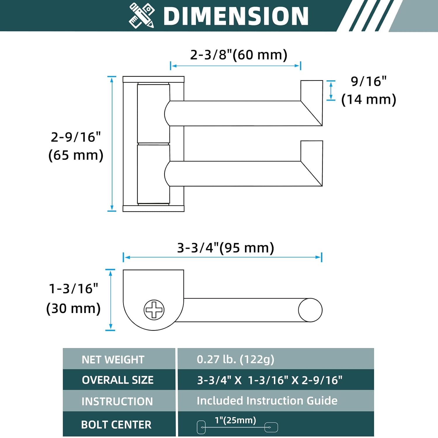 MULTI FUNCTIONAL HOOK: length of the useful hanging part is 2-3/8″(60mm), can accommodate 2 different sizes of items at the same time, helping you organize your home
