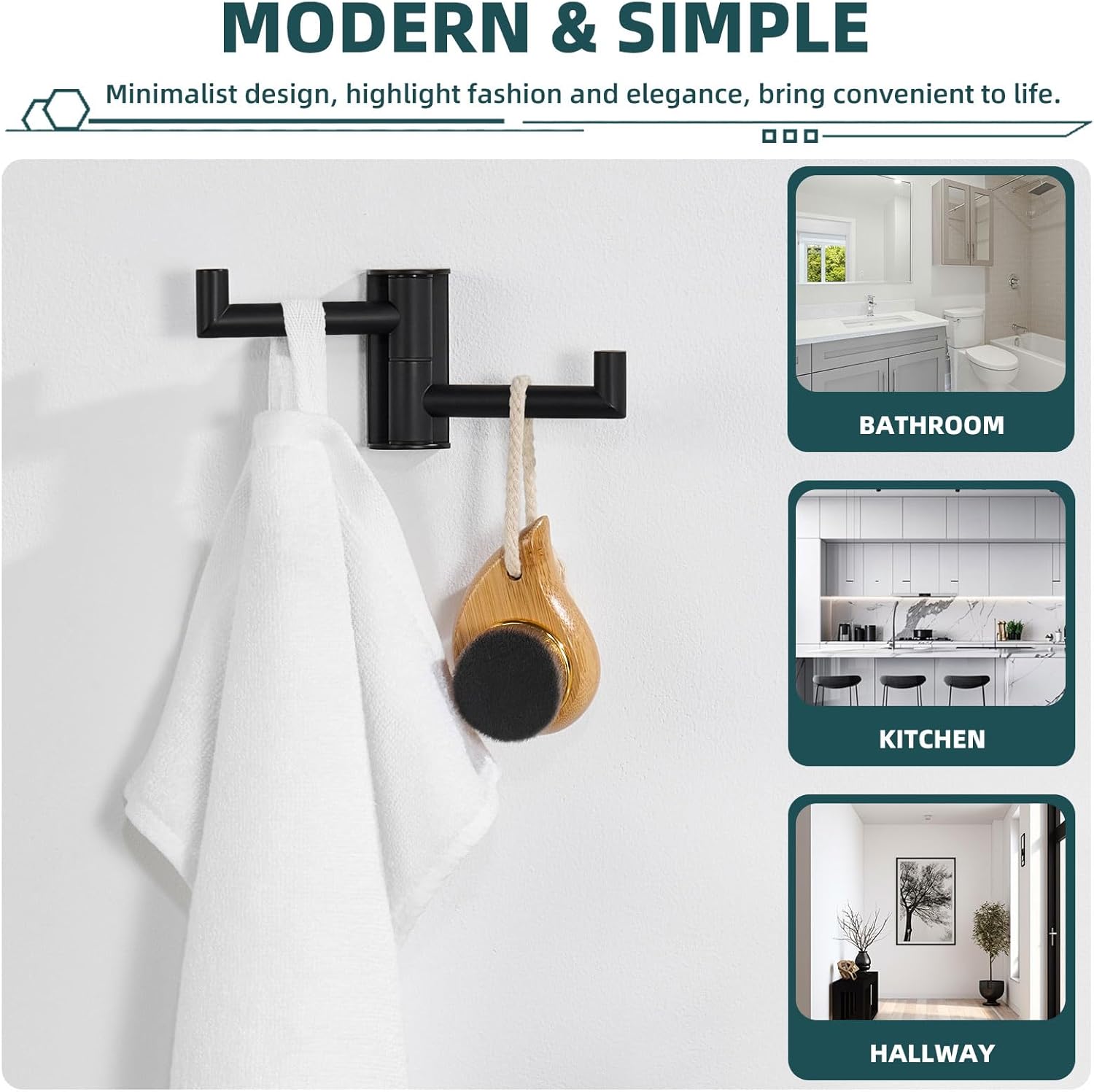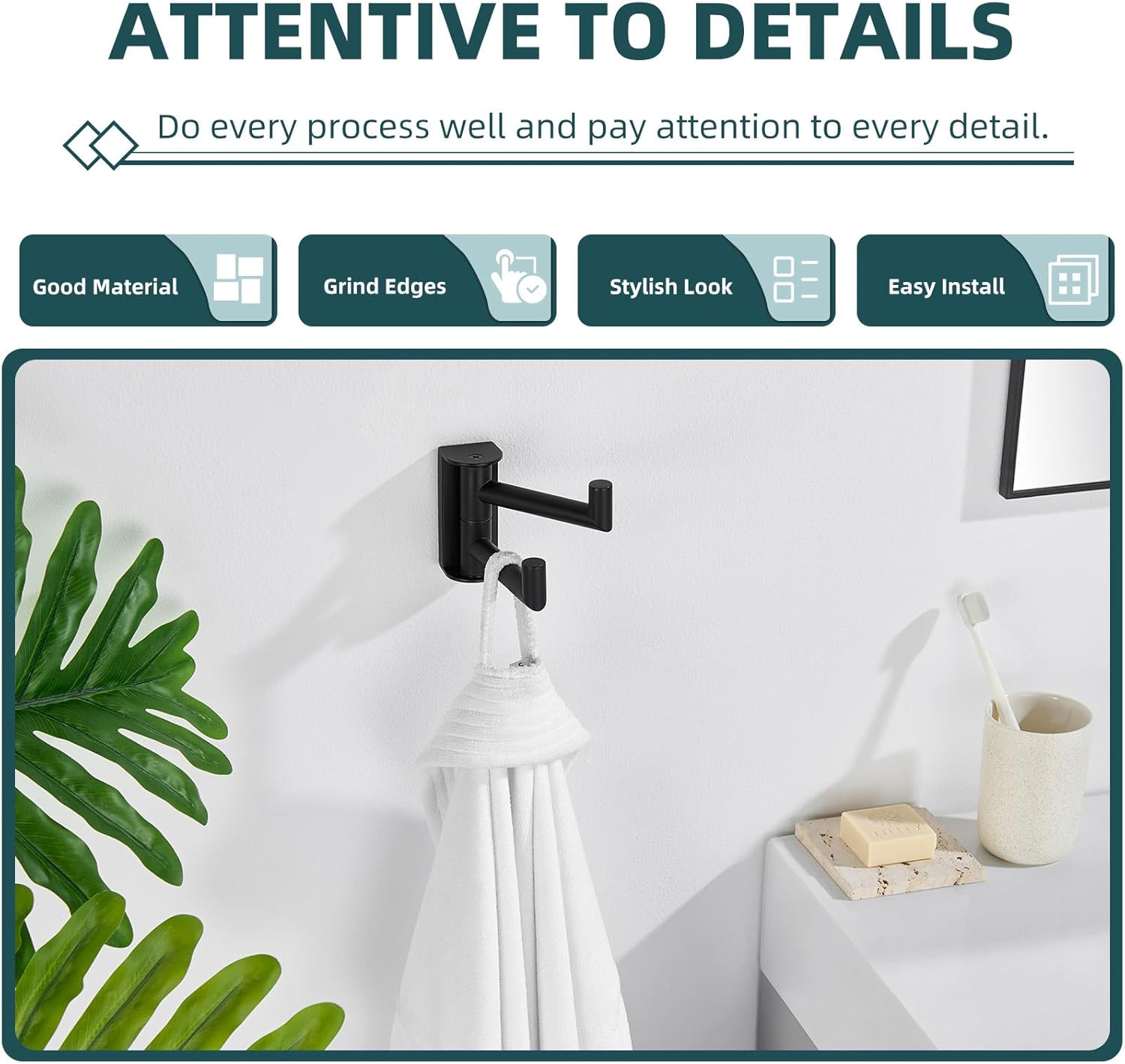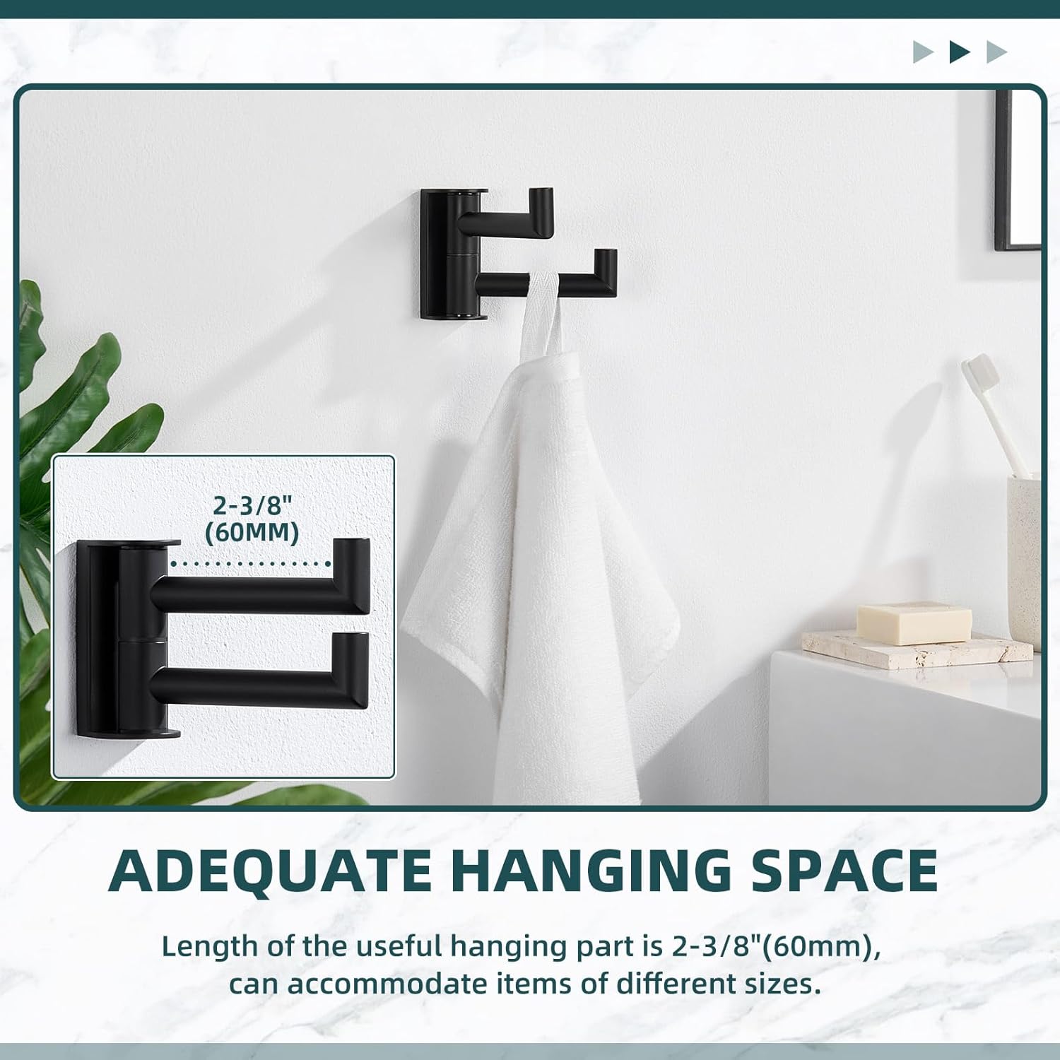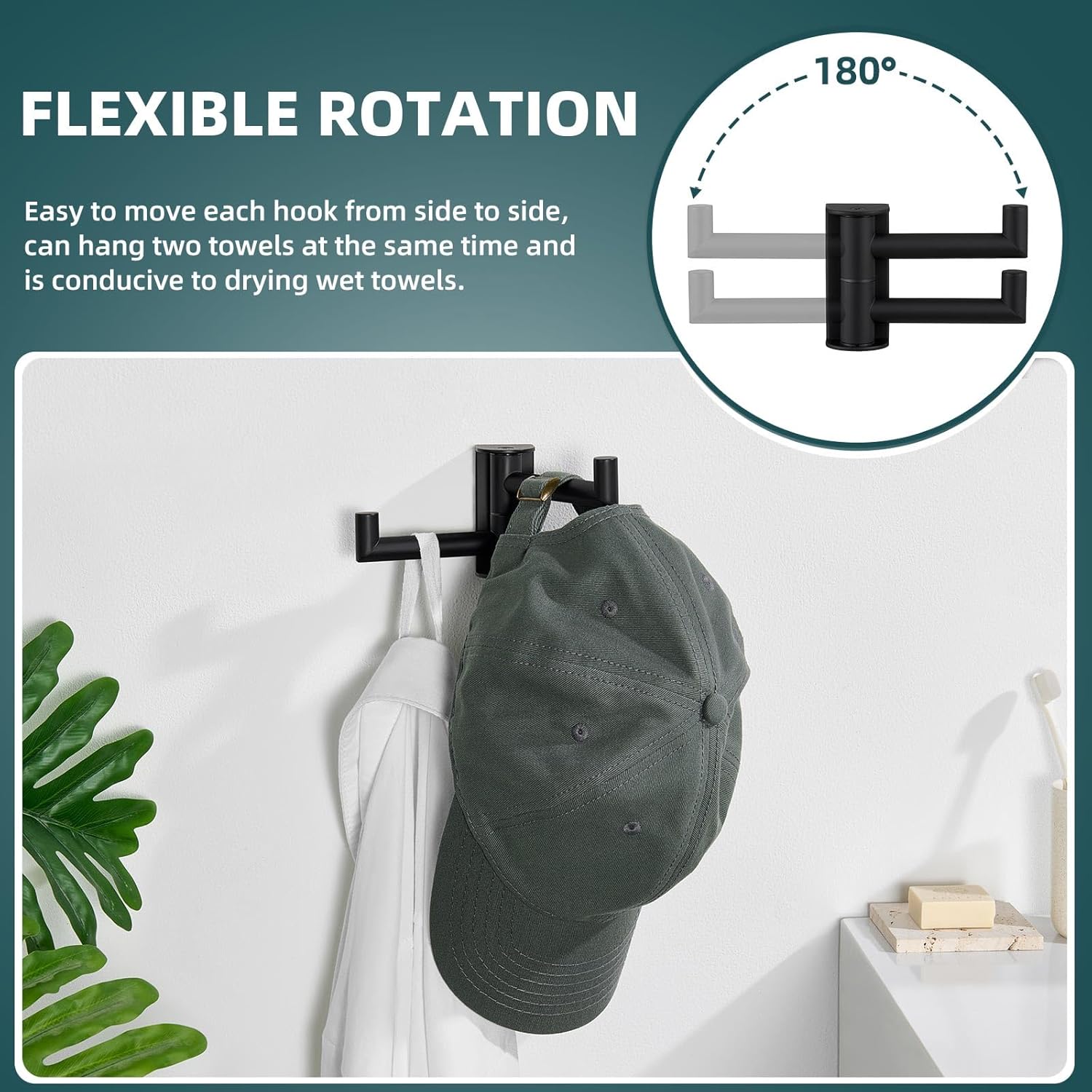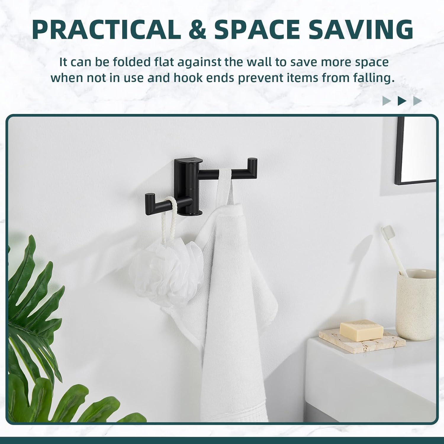 MAKE FULL USE OF SPACE: practical hook allows you to fold flat against the wall to save more space when not in use, suitable for spacious or even small bathrooms