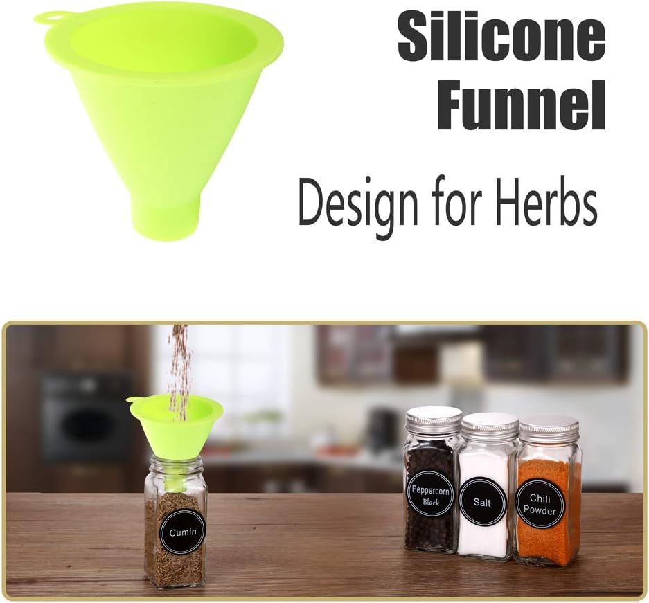 CONVENIENT SILICONE SPICE FUNNEL: The funnel specially designed for spice makes it easier to add new spices to your spice containers.