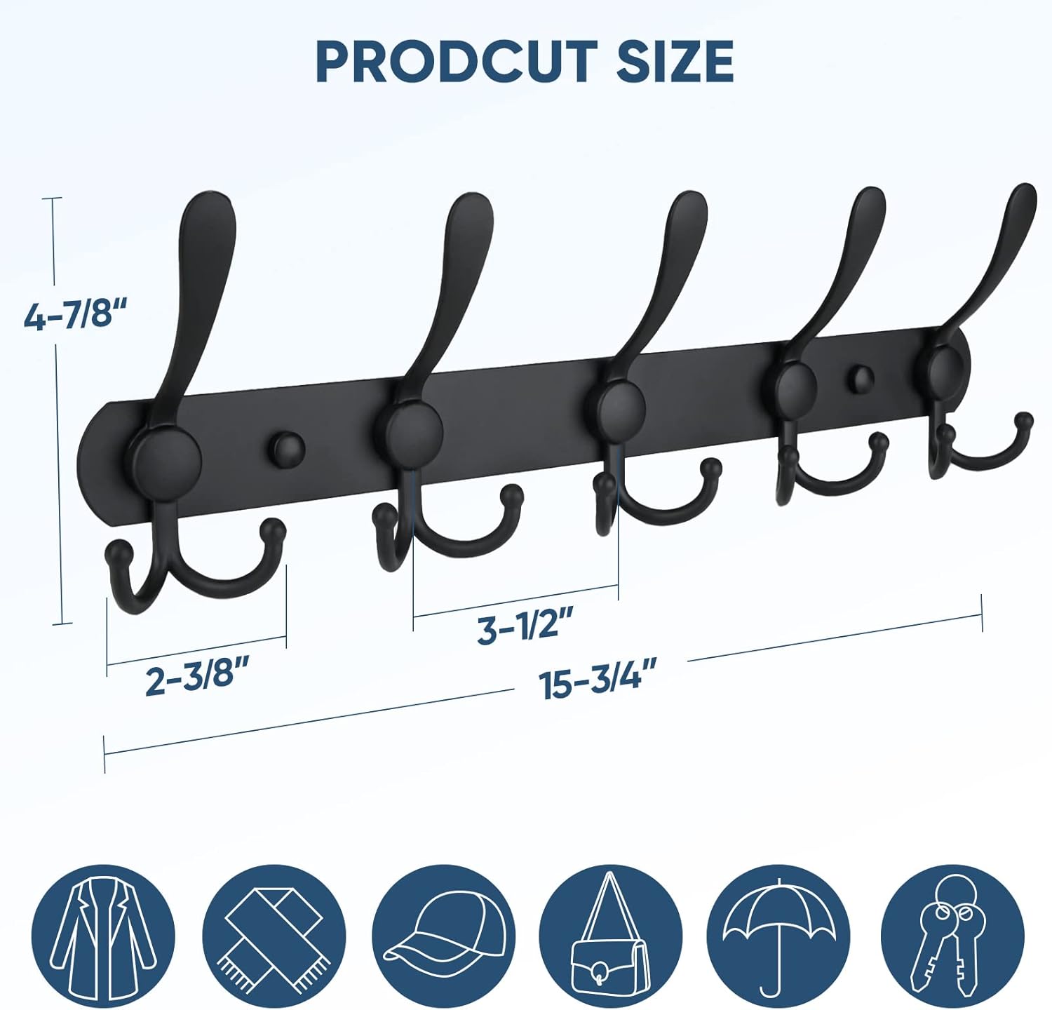 [WIDE APPLICATIONS] The coat rack can be installed on the brick wall, drywall, tile wall, or behind the door. You can also use it as door hooks for hanging, door hanger hook and bathroom door hook. The protruded top hook makes it a perfect non-slipping towel hanger or hoodie hanger. Great for mudroom, entryway, bedroom, and closet